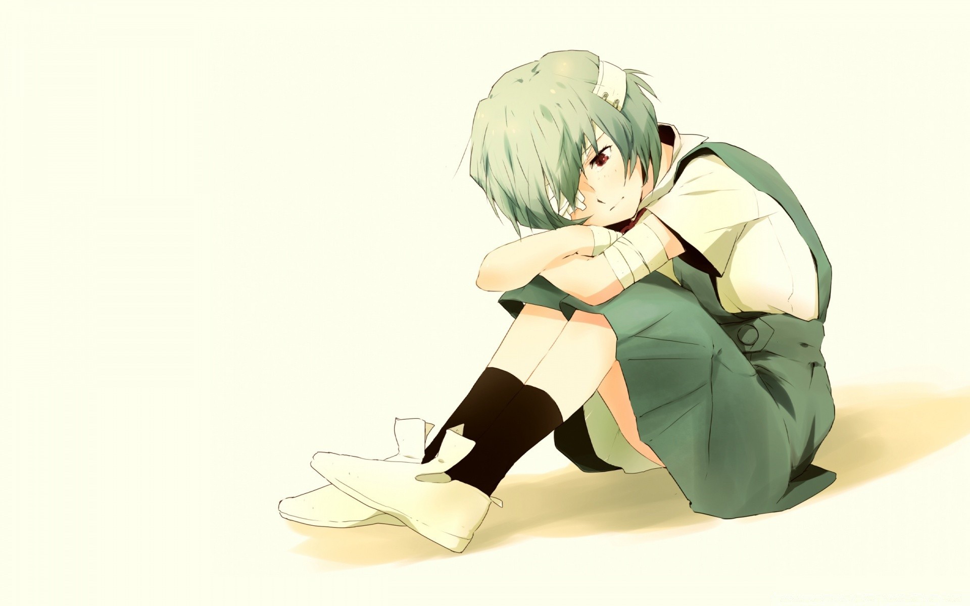 Drawing of an anime girl with big red eyes on a green background
