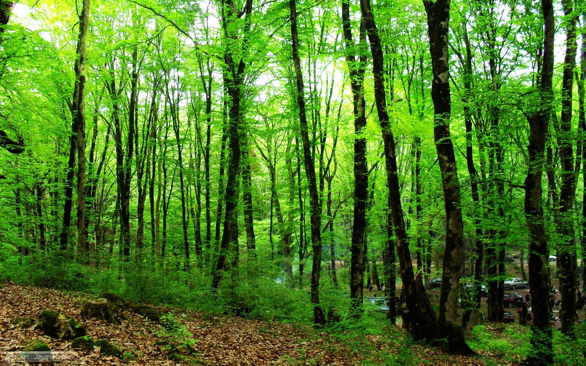 Forest landscape with leafed trees