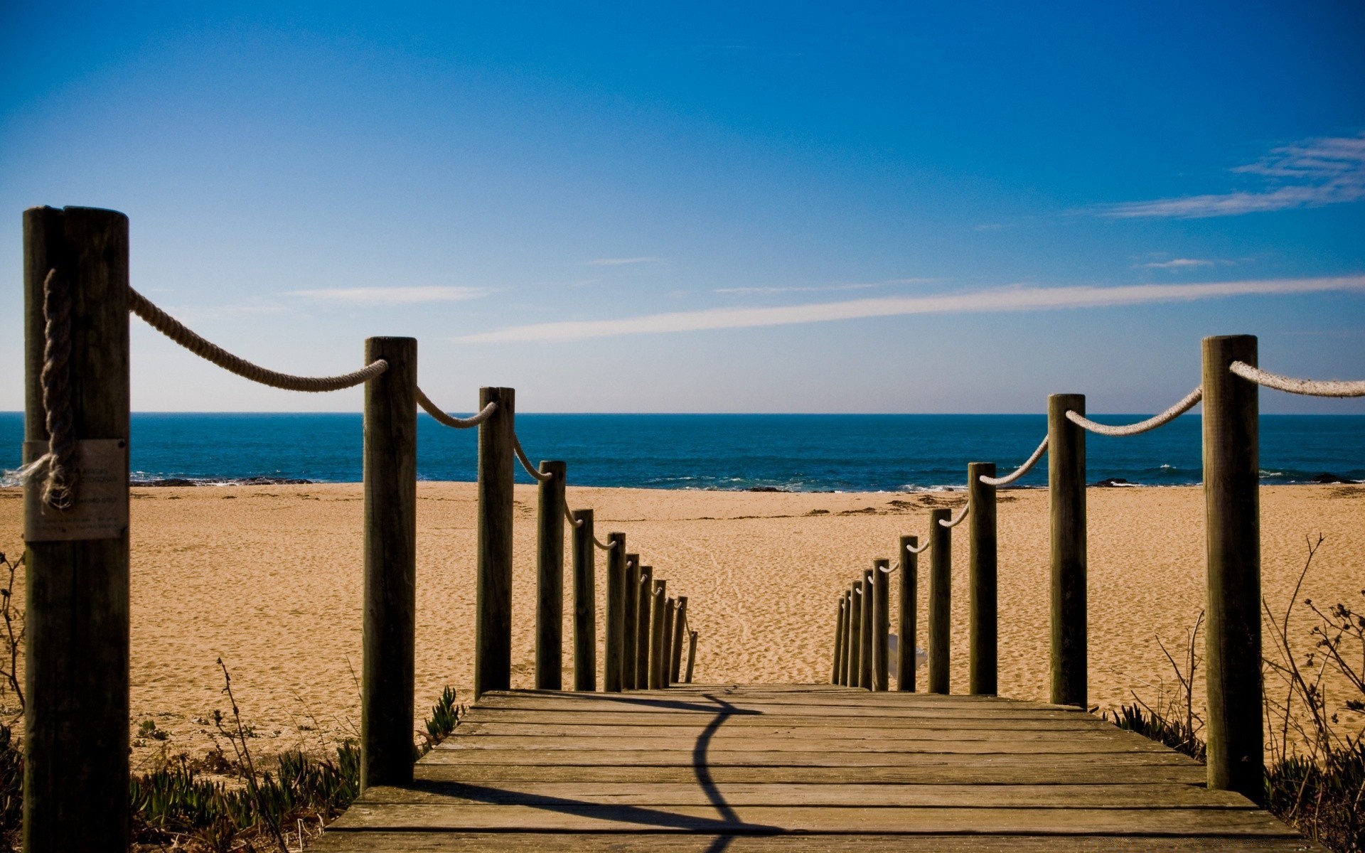 Wooden bridge to the beach and the sea