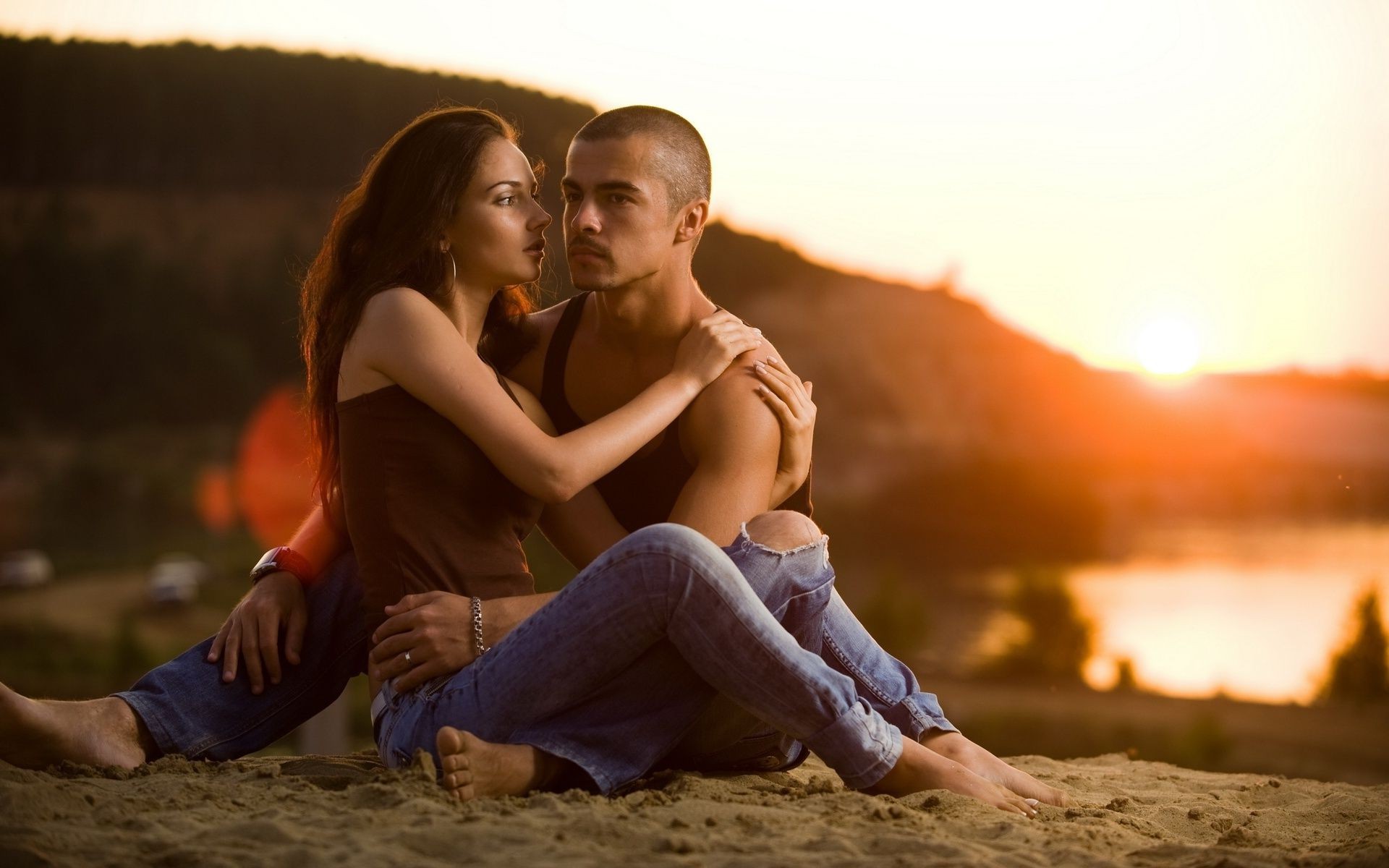 A couple in love on the seashore