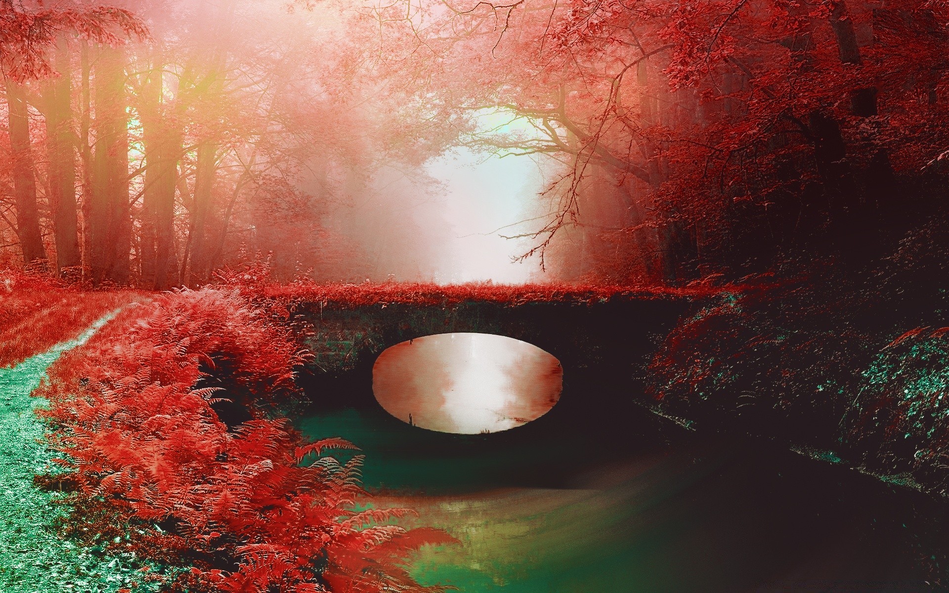 Bridge supports illuminated by lanterns. On a dark night