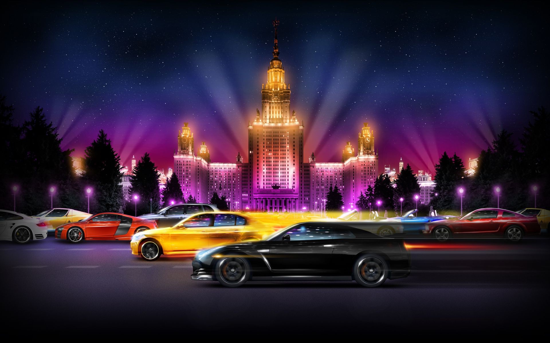 Sports car race at night
