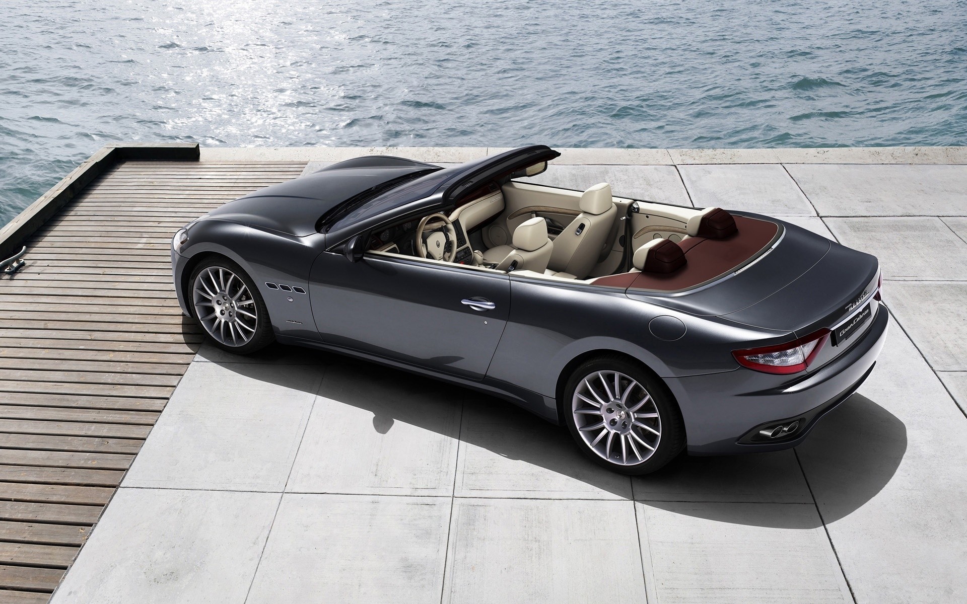 Silver Maserati by the water