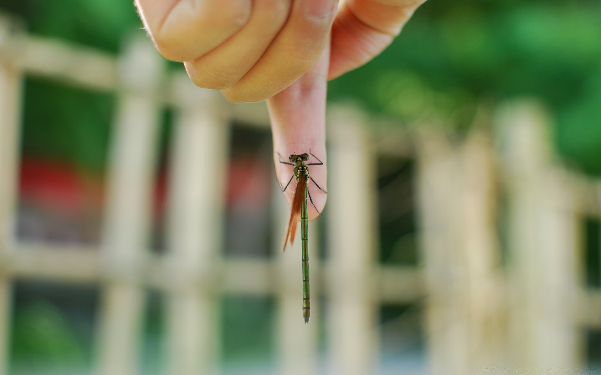 In summer, the dragonfly is outdoors