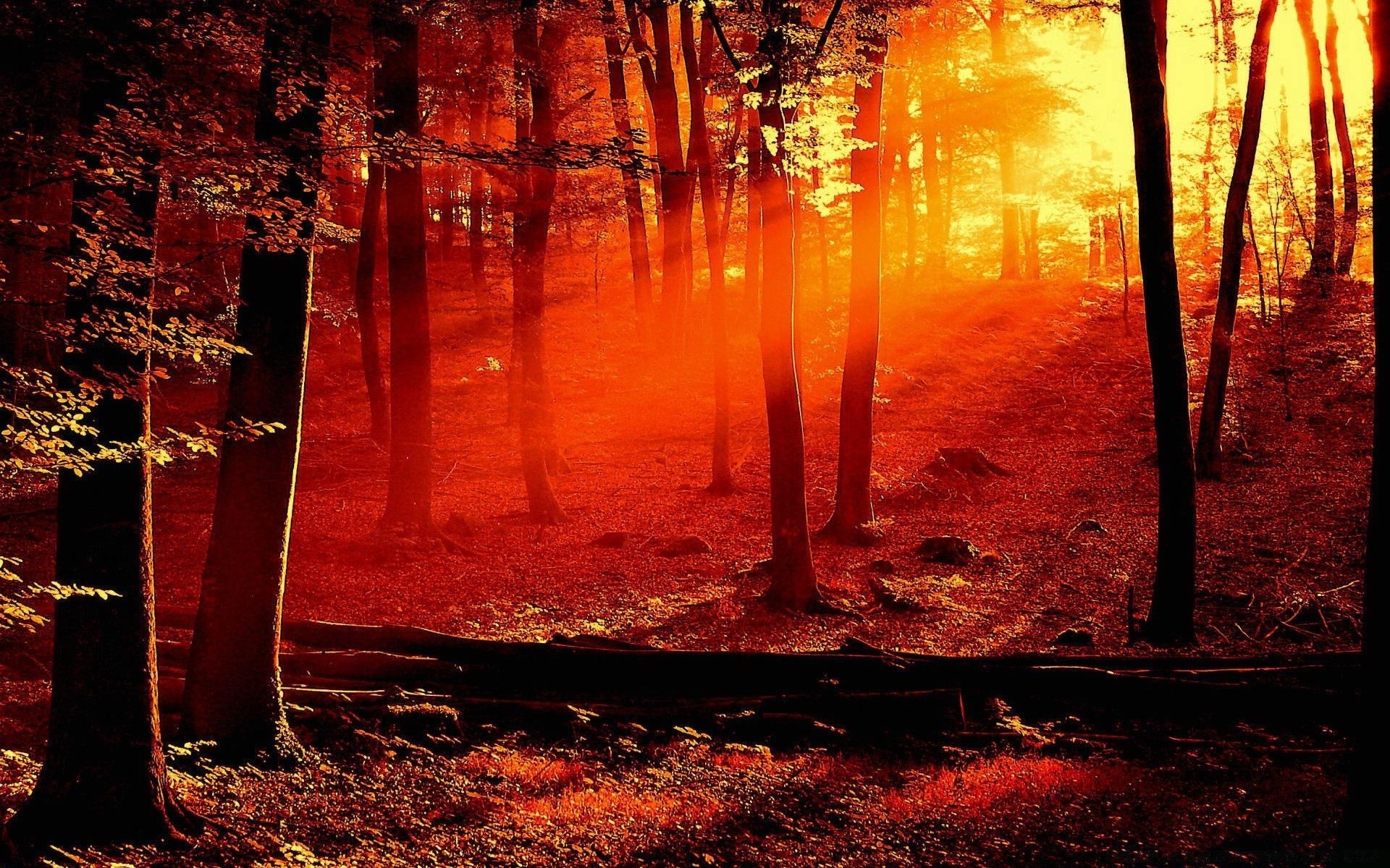 Autumn landscape. Birch trees with yellow leaves. Yellowed ferns