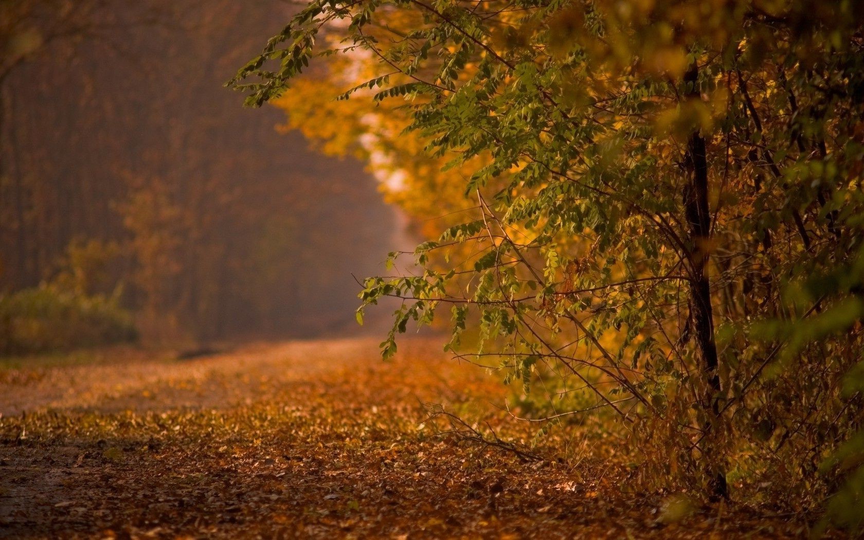 A road in the middle of autumn trees