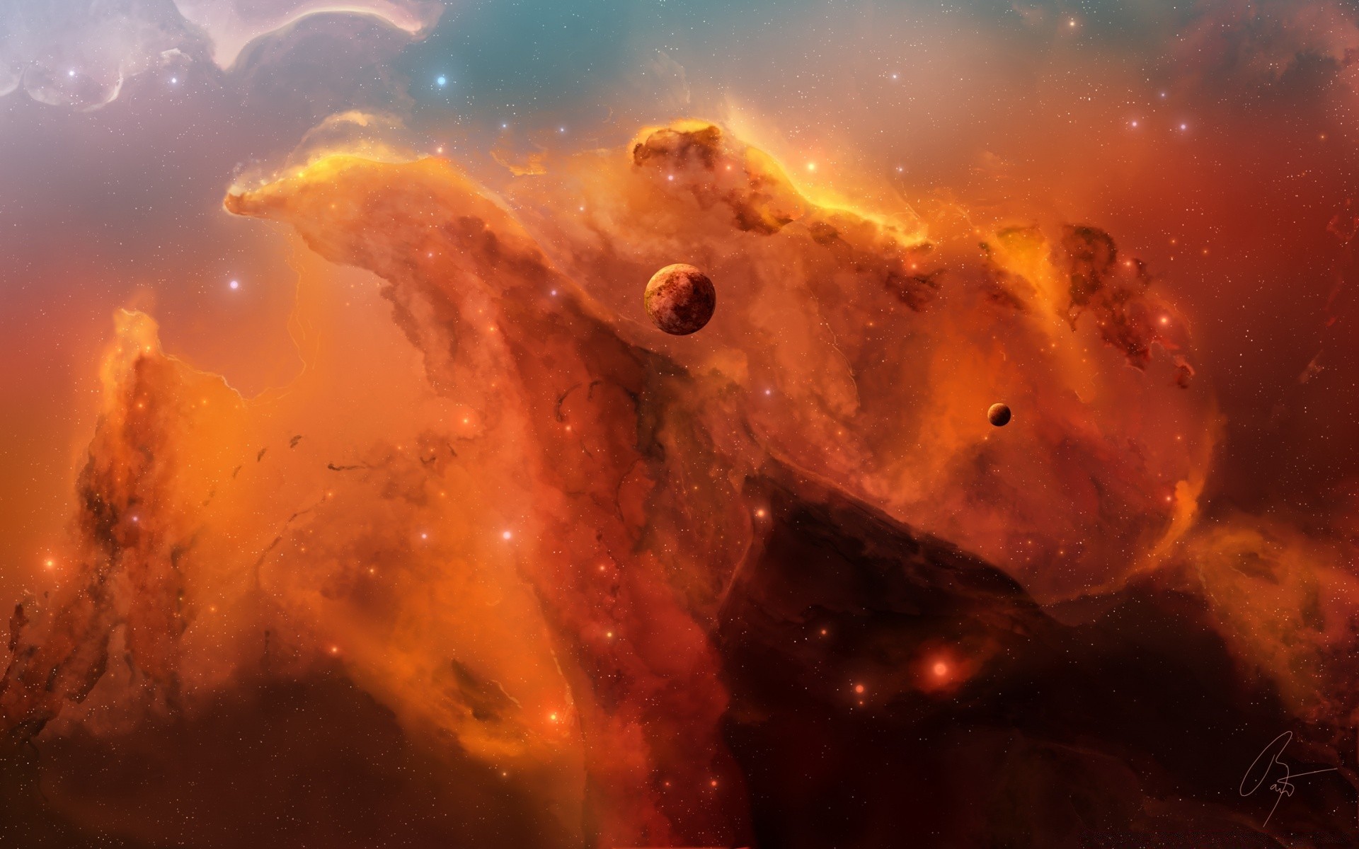 A view of space with flames