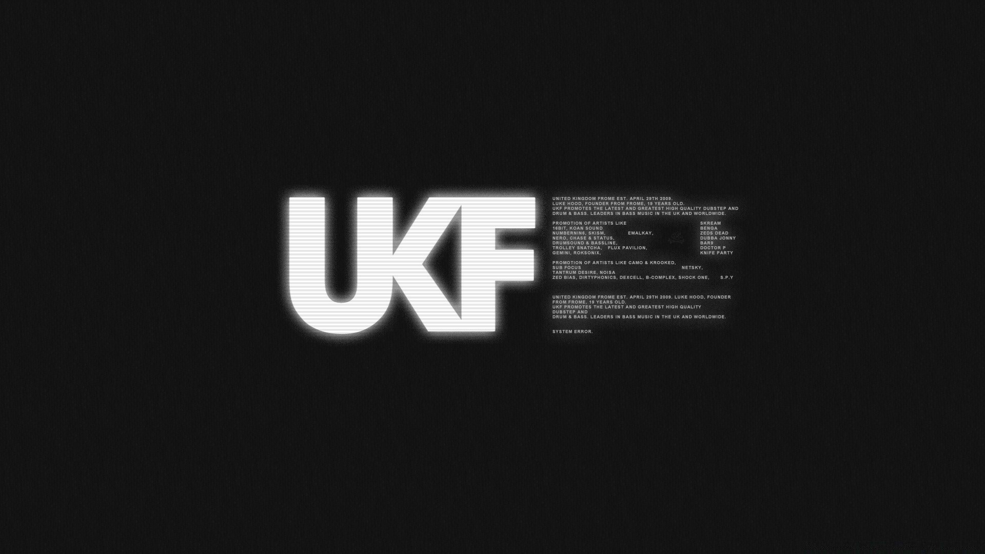 Screensaver in a dark background with English letters