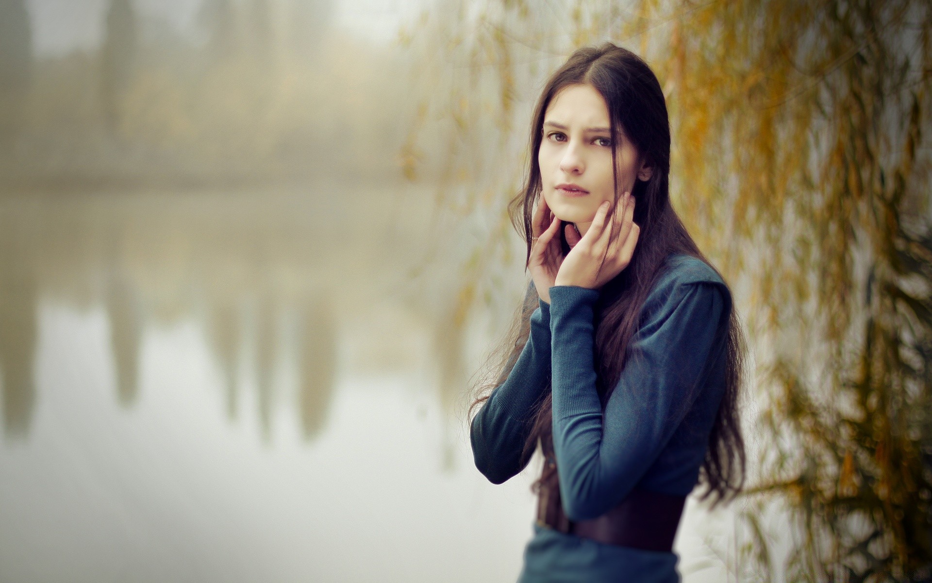 Sad girl with long hair