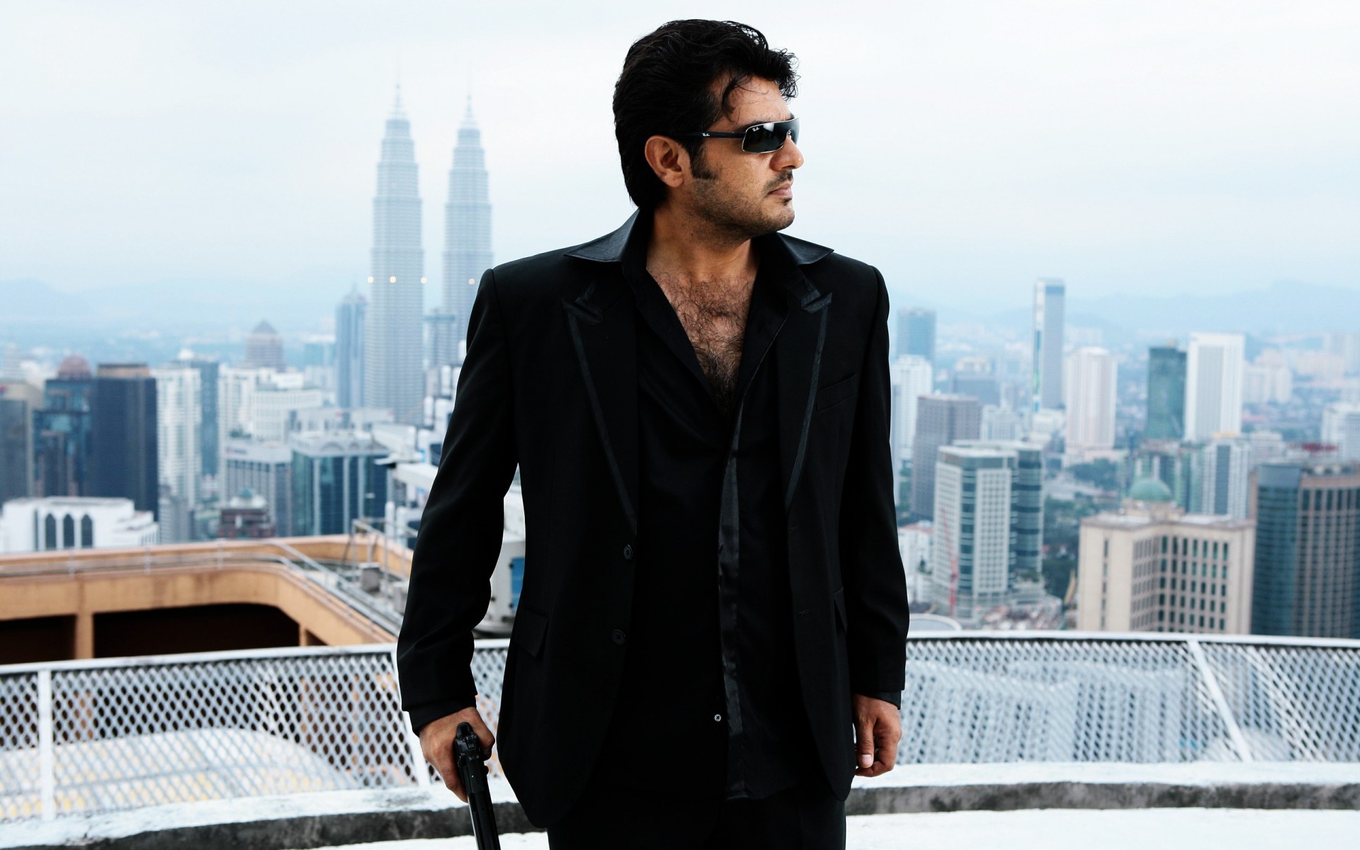 Business handsome with a view of the city