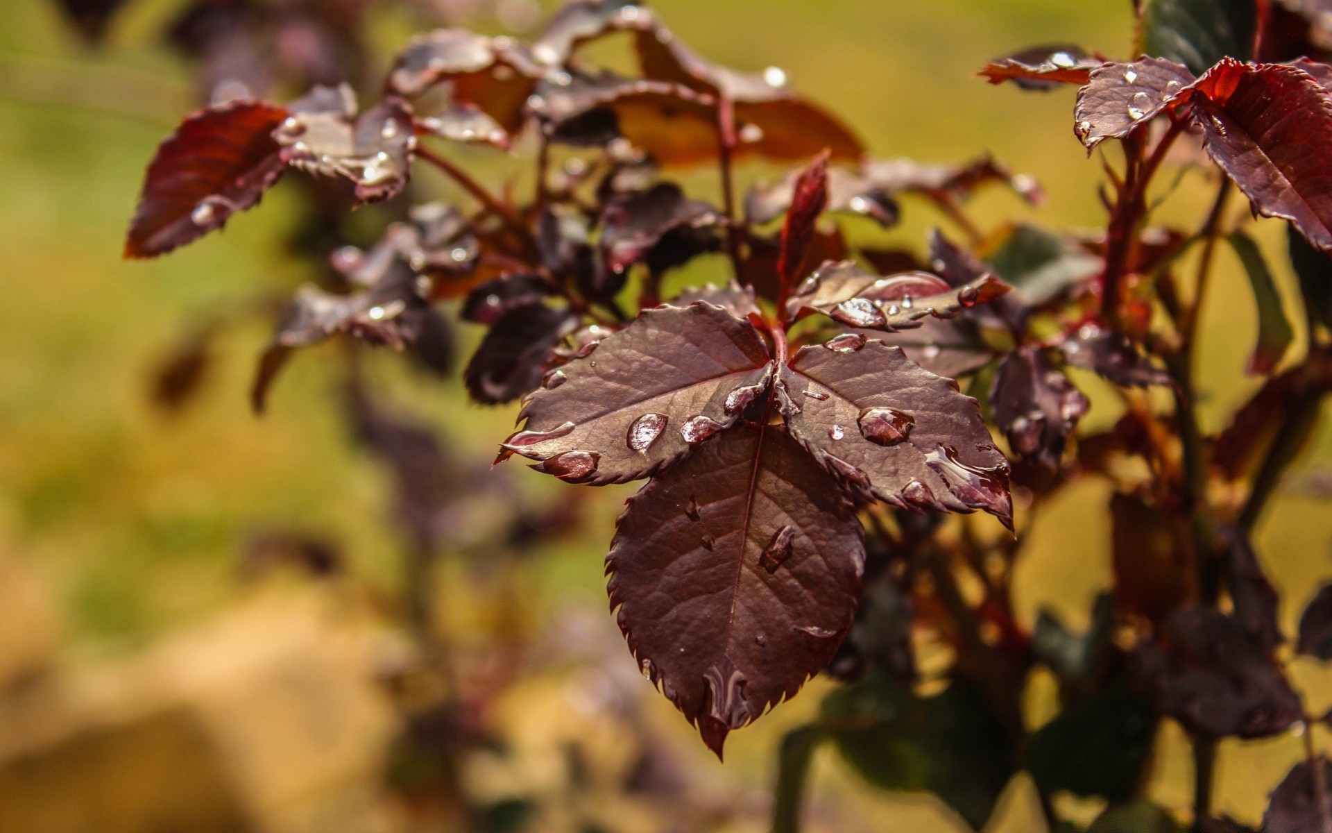 Rain falls on the leaves