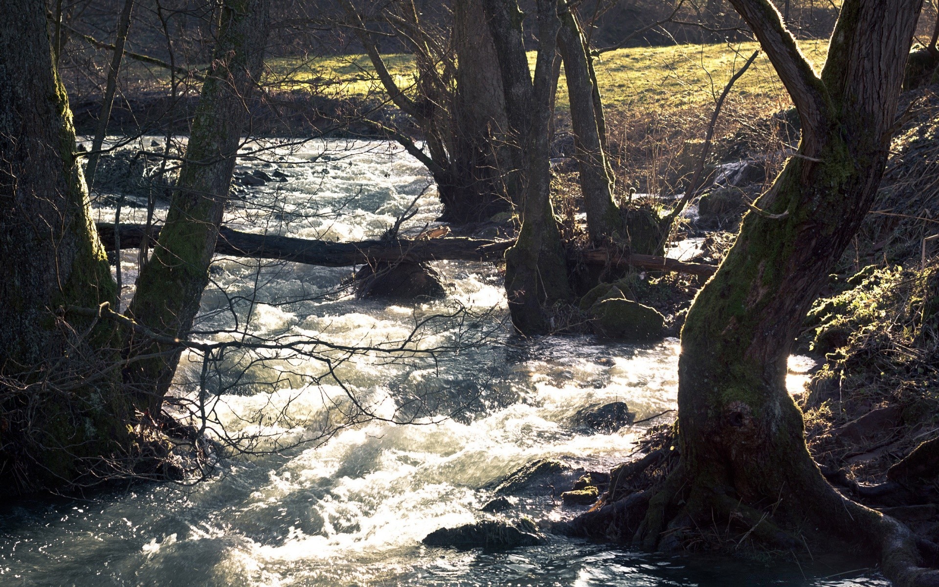 The mountain is flowed by the river and there are trees and bushes aroundThe mountain is flowed by the river and there are trees and bushes around