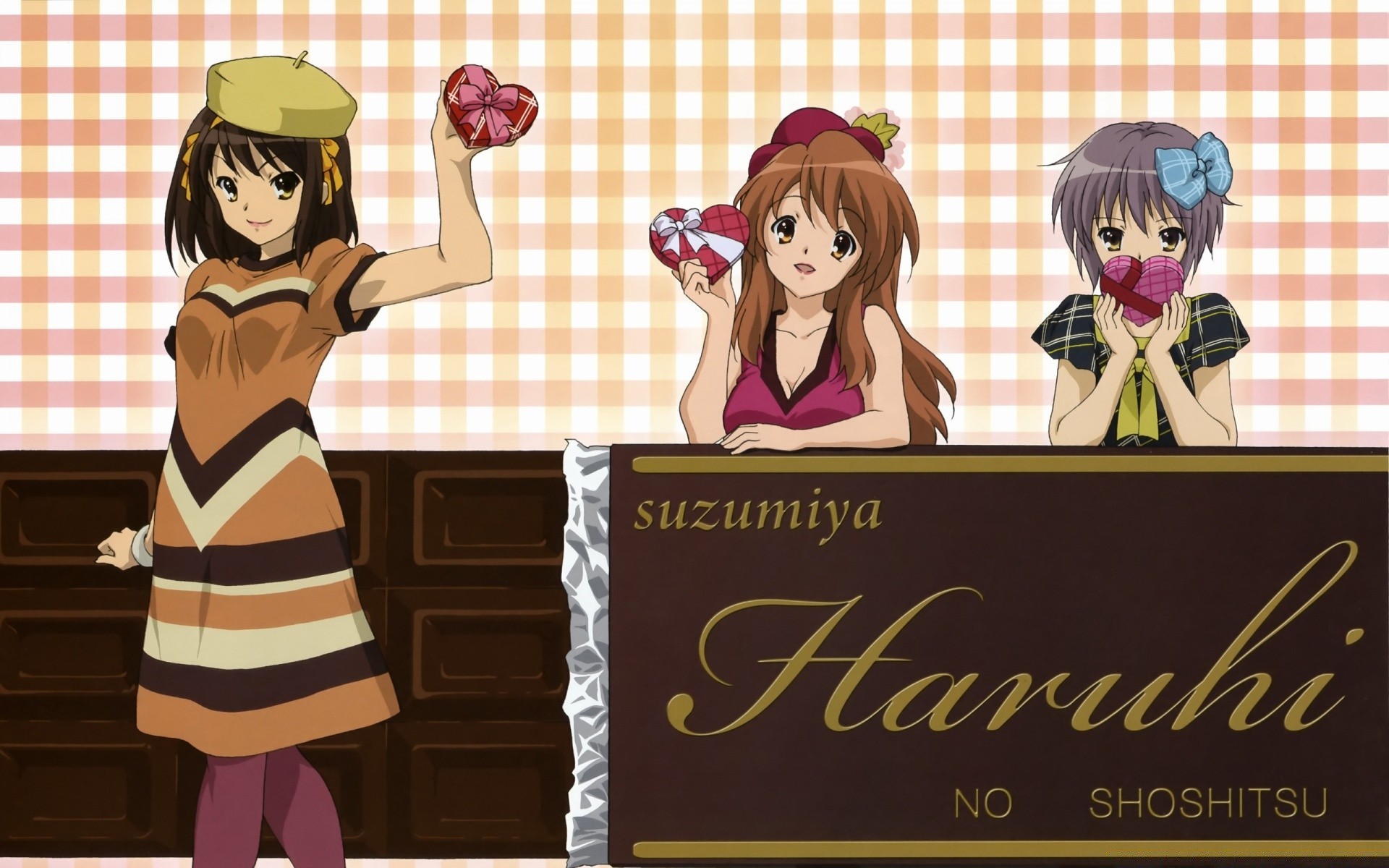 Three anime girls with hearts