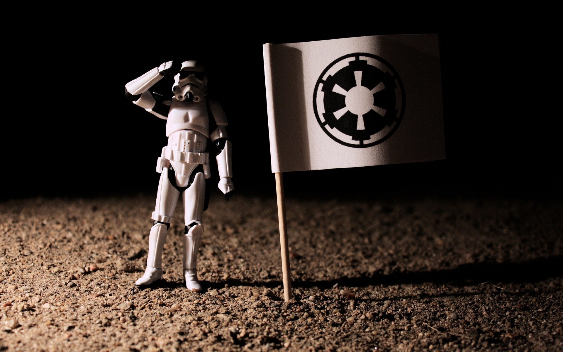 A Star Wars action figure with a flag
