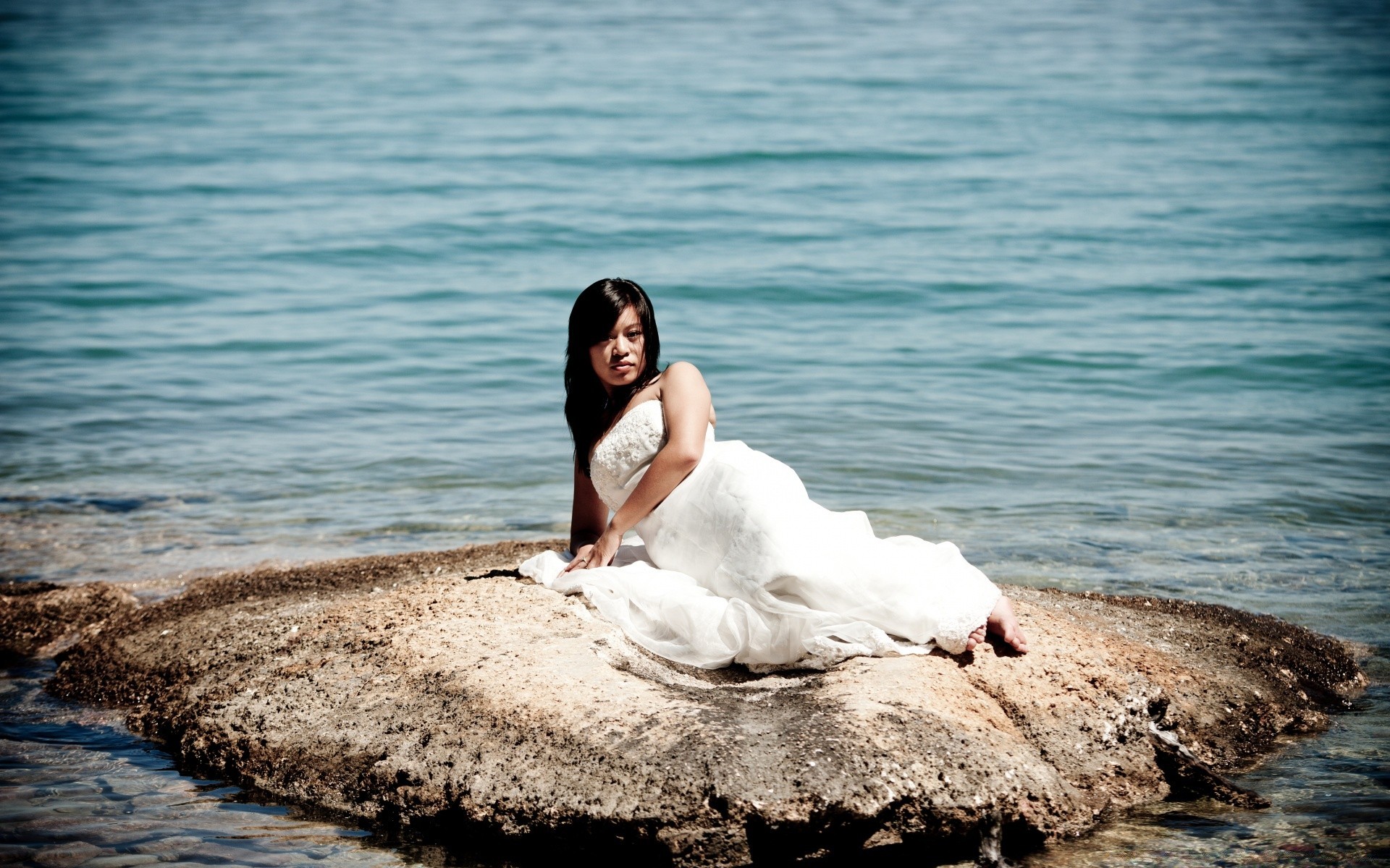 The stones on the seashore are created for them, for beautiful girlsThe stones on the seashore are created for them, for beautiful girls