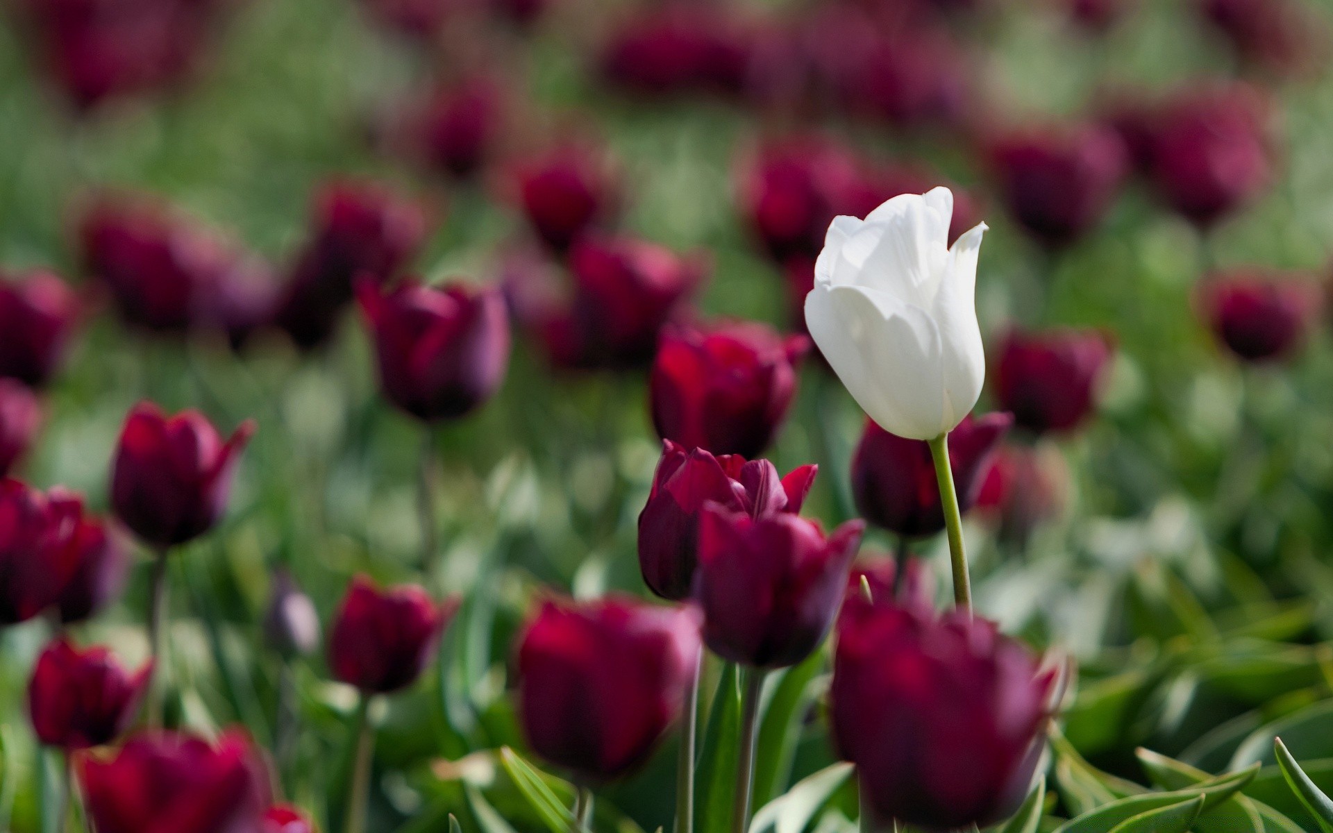 Beautiful tulips in a green field