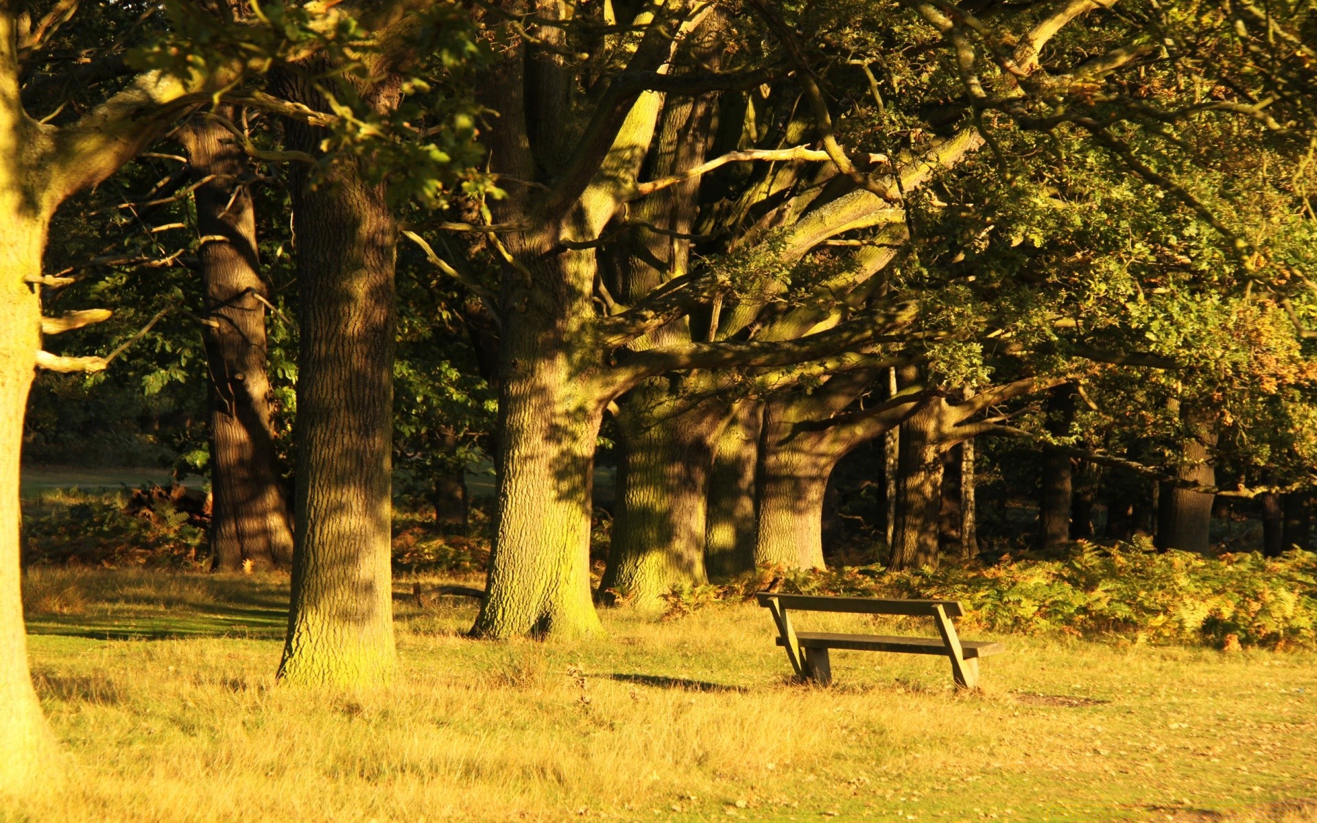 A bench in nature next to the trees