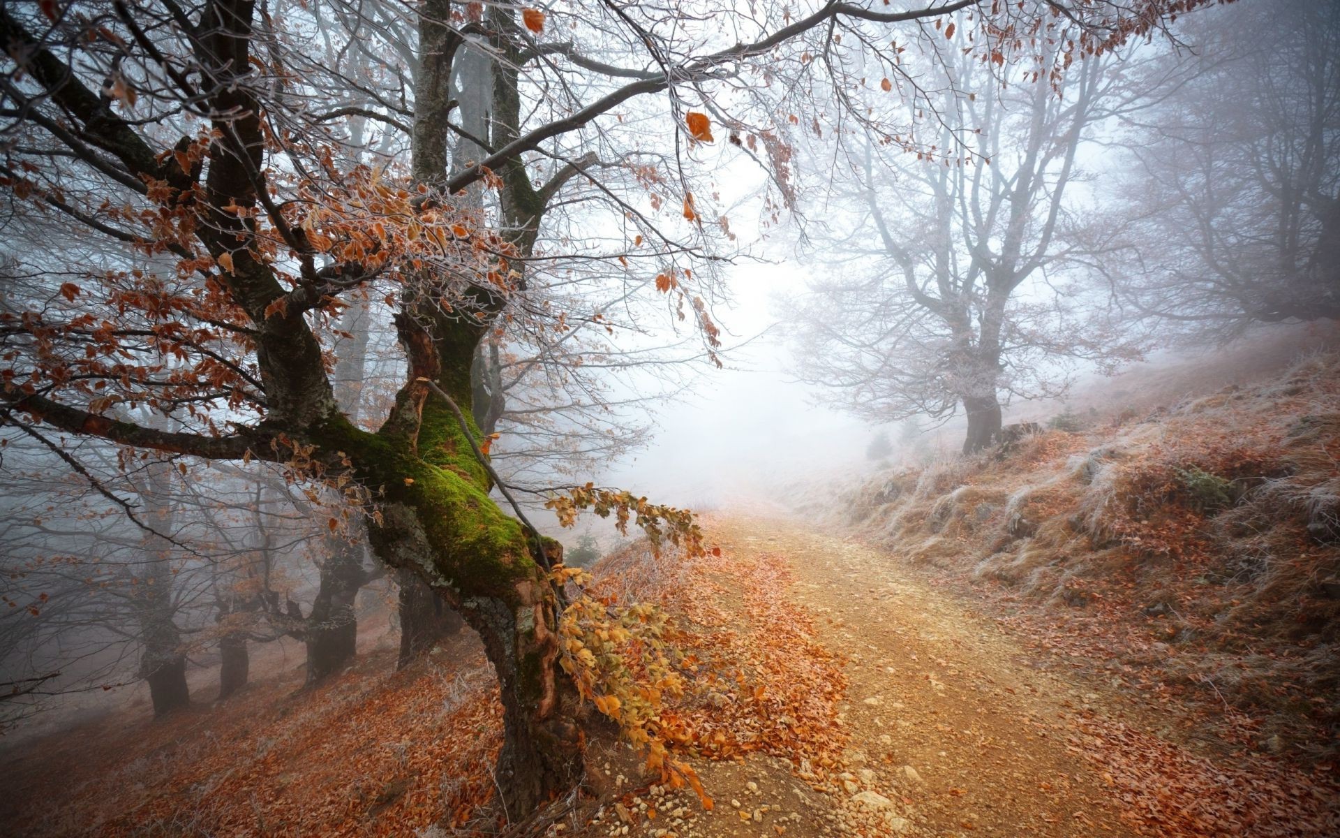 The road leading into the misty dawn
