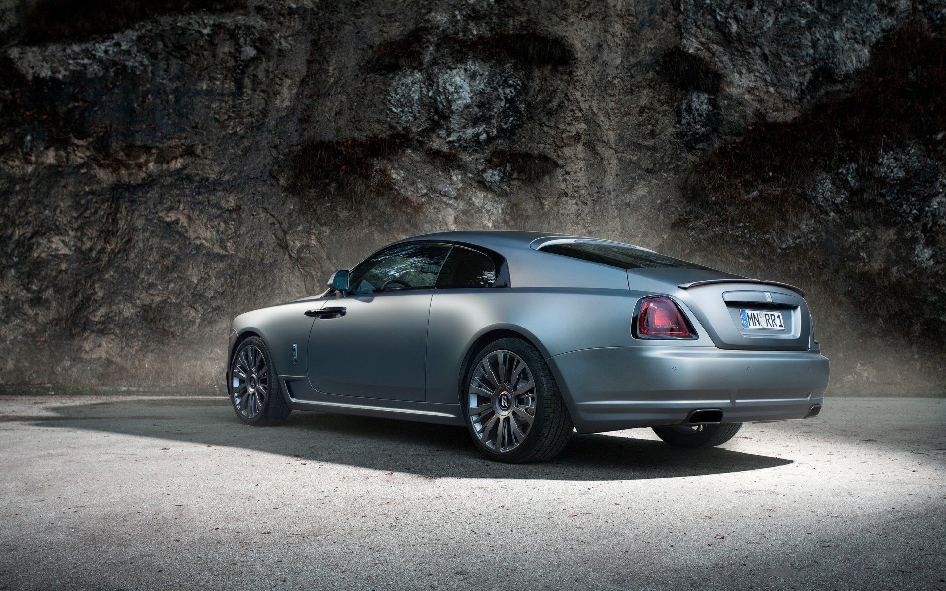 A graphite-colored rolls royce car stands on the sidewalkA graphite-colored rolls royce car stands on the sidewalk