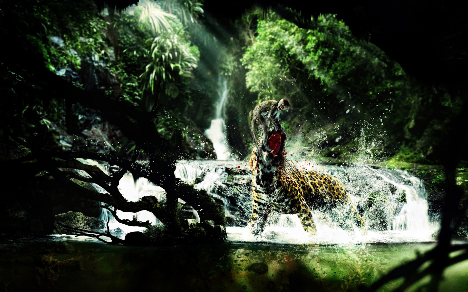 Tiger and monkey cut in the water