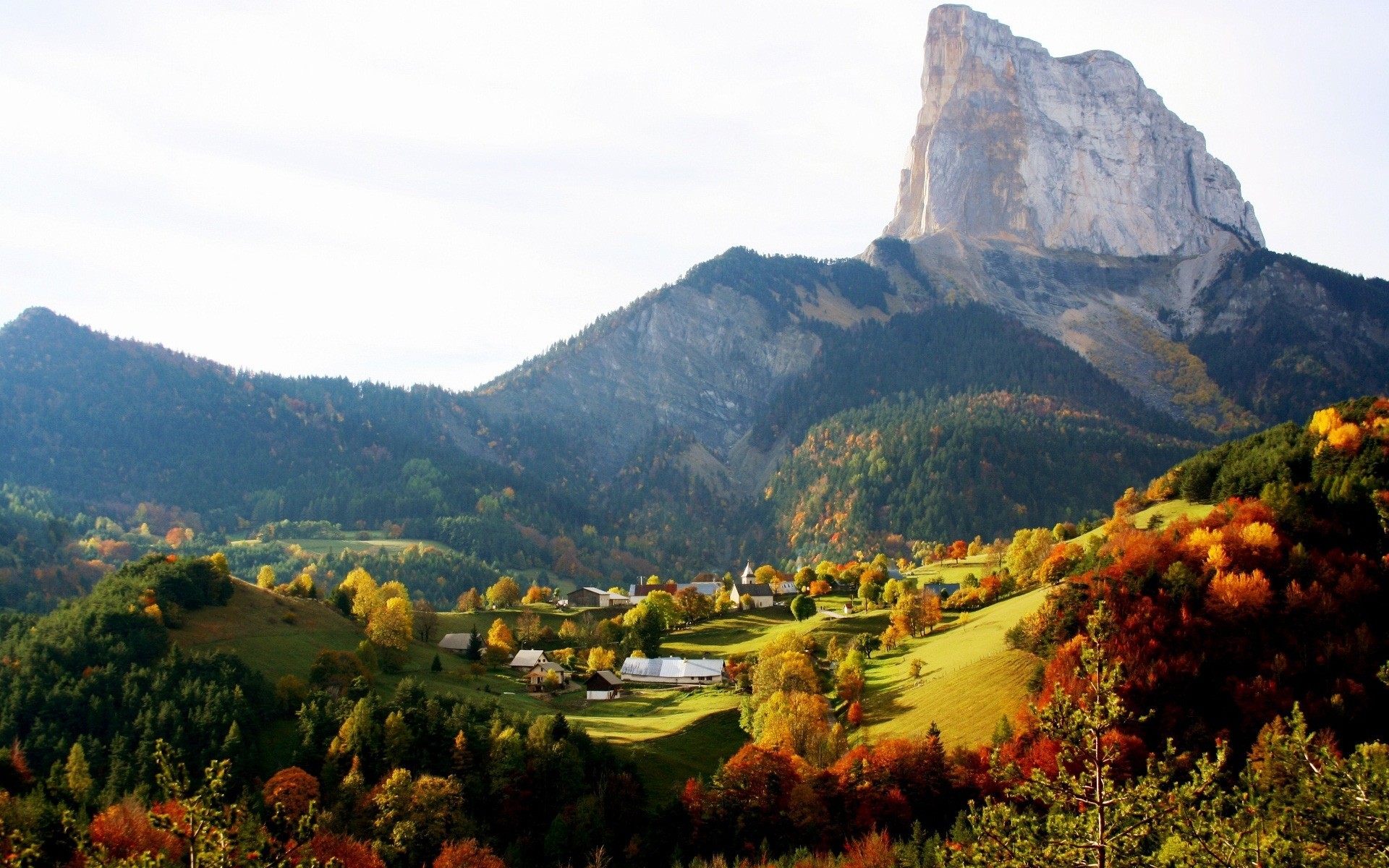 Autumn colors on the background of a mountain landscape