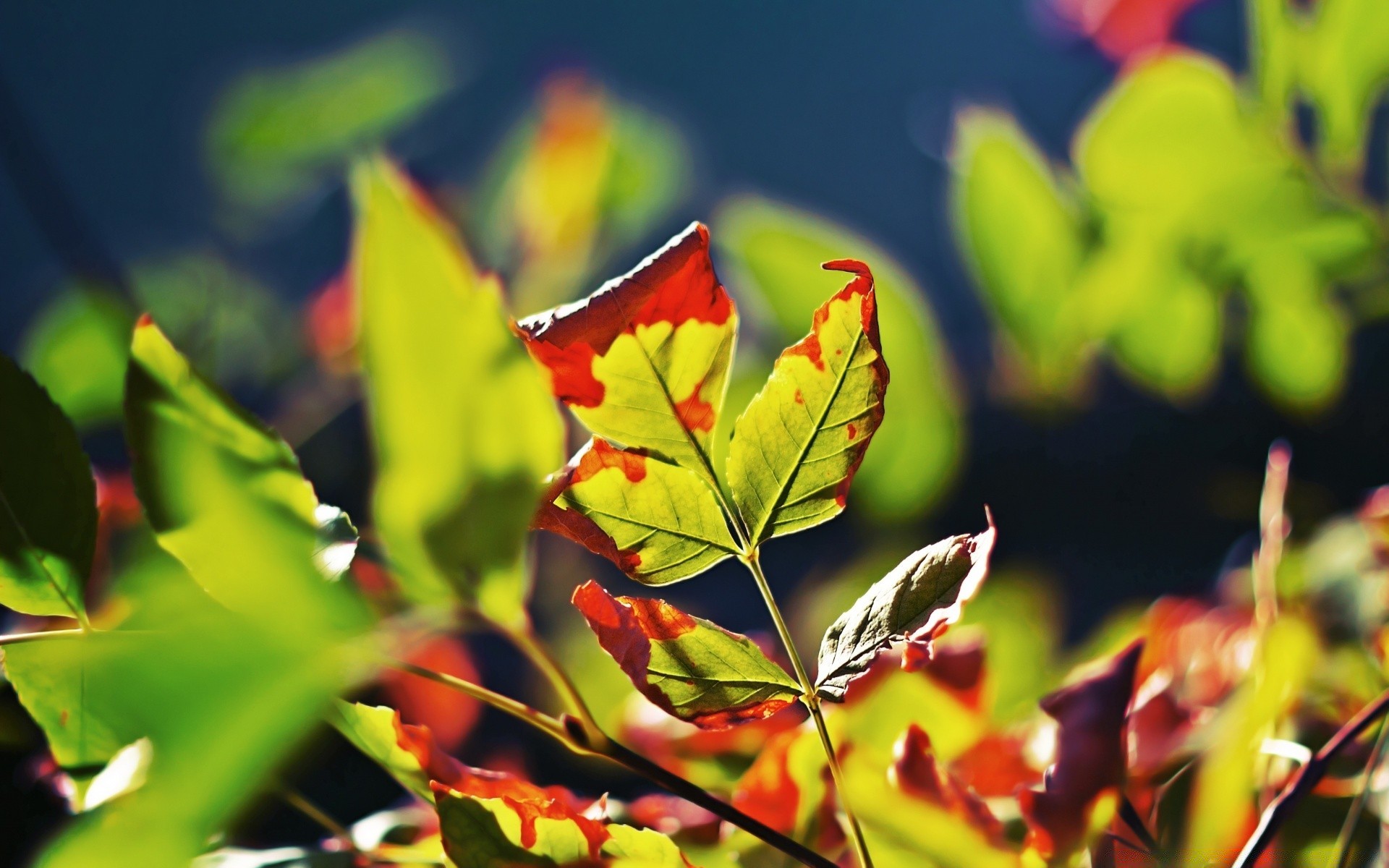 A carpet of yellow leaves post shafts in dark thick trees with large crownsA carpet of yellow leaves post shafts in dark thick trees with large crowns