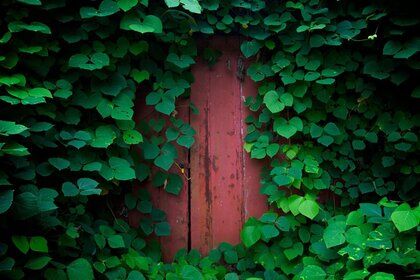 Cool ivy overgrown brick house with wrought iron carvings and gatesCool ivy overgrown brick house with wrought iron carvings and gates