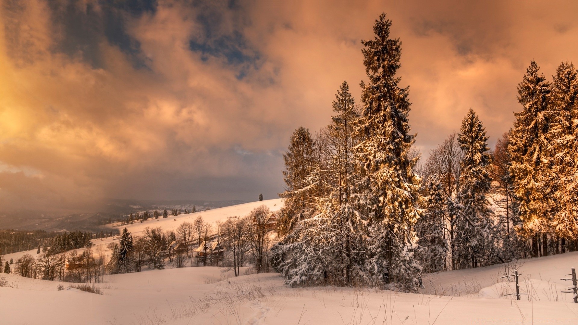 Winter forest on the background of a mysterious sunsetWinter forest on the background of a mysterious sunset