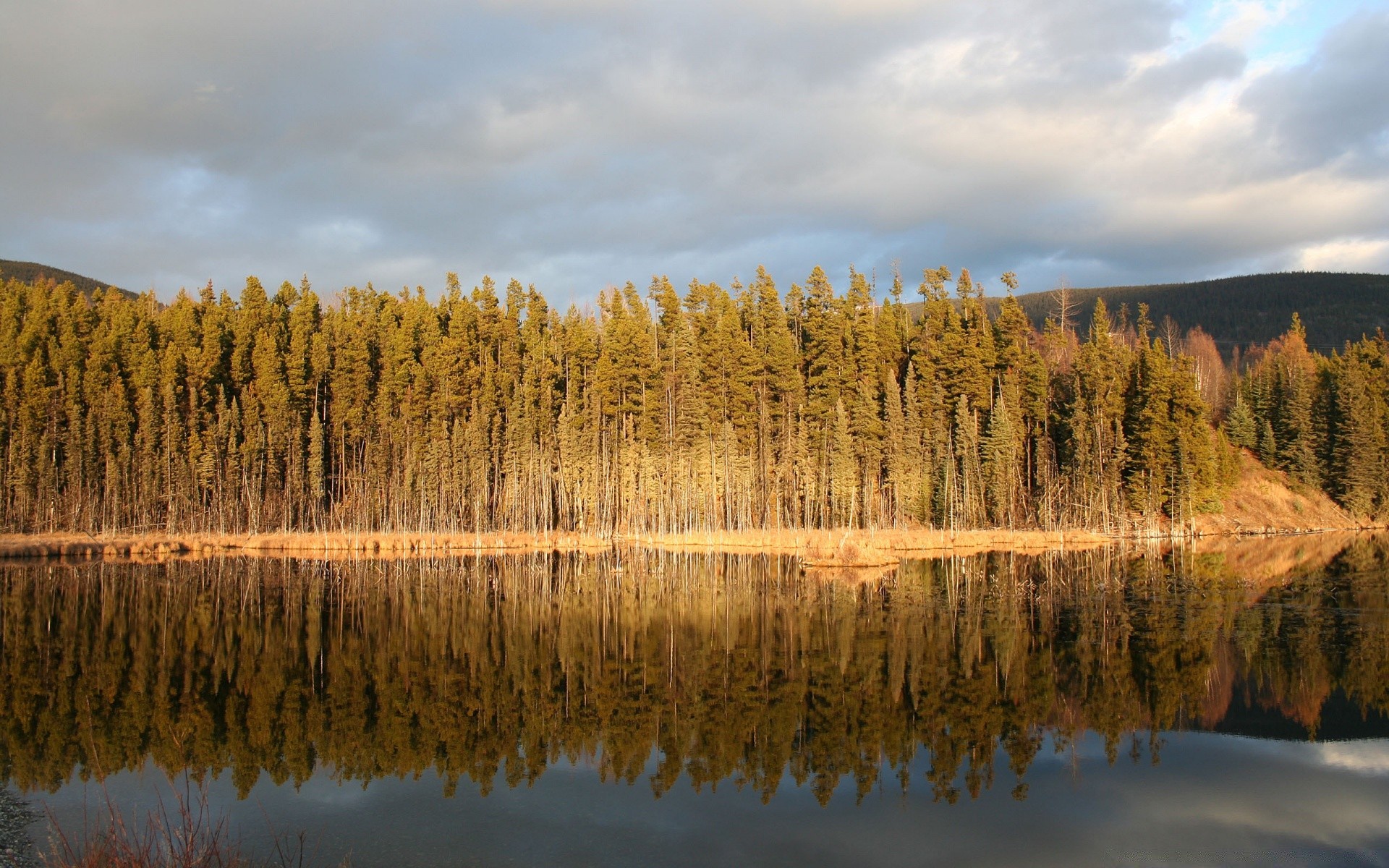 Landscape of autumn nature of trees and water