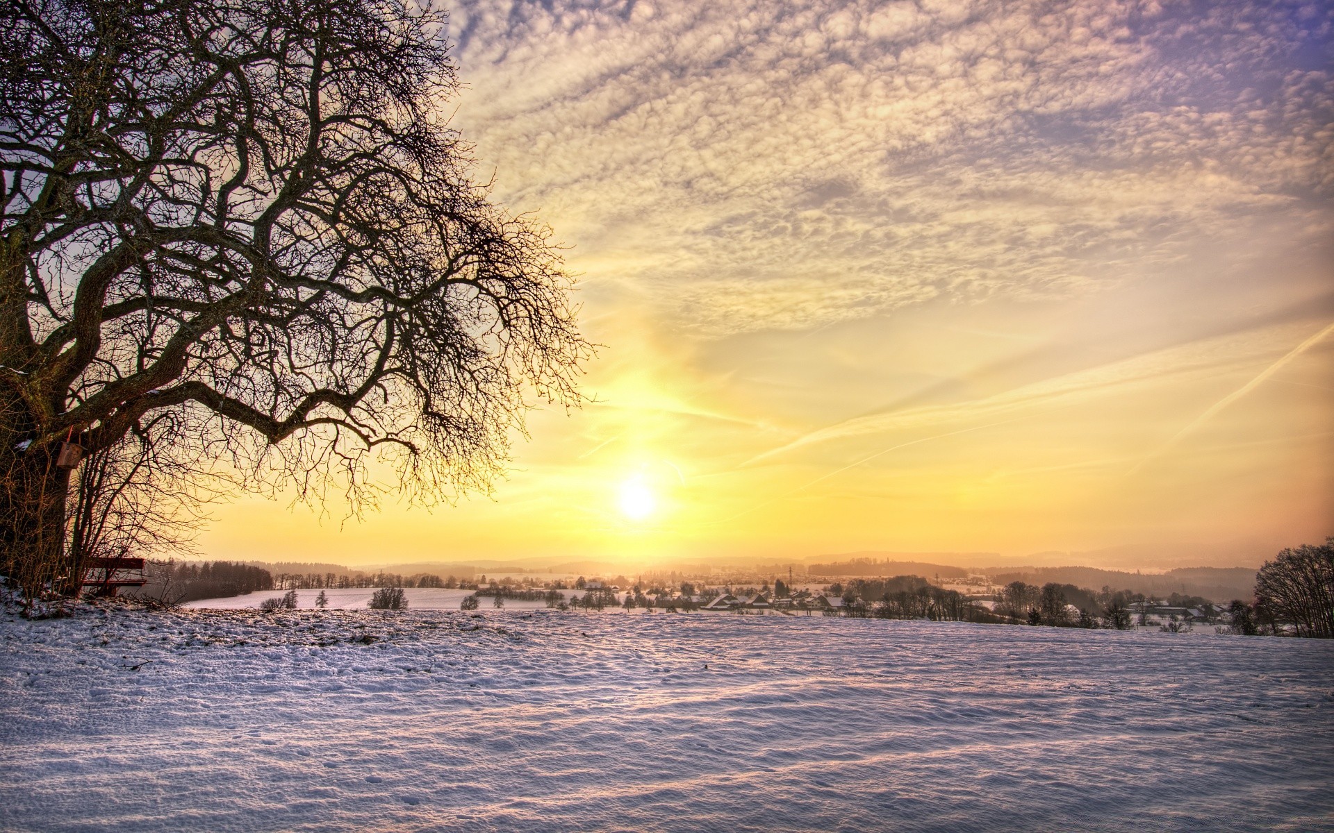 Sunrise over the winter field - wallpapers for your phone