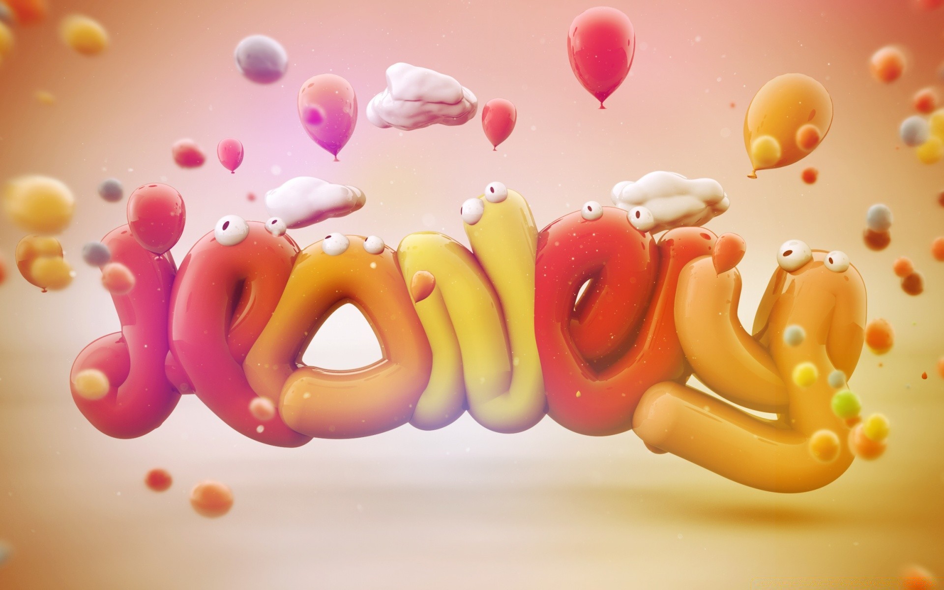 3D graphics with balloons and clouds