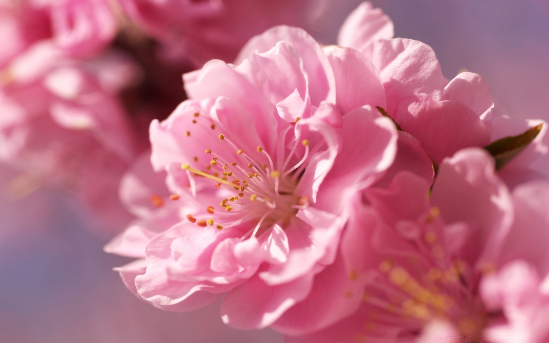 Pink delicate flower on a tree