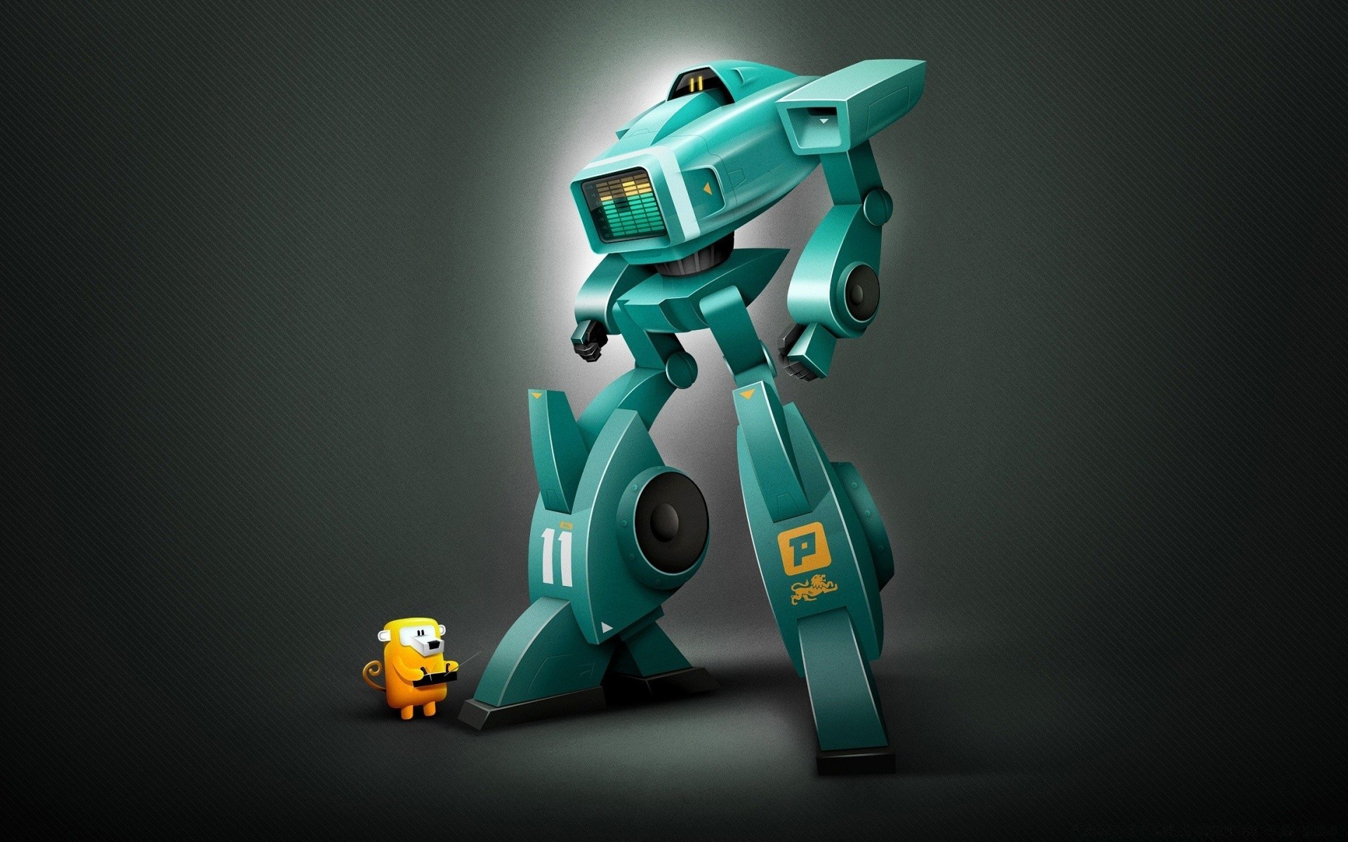 Cartoon image of a robot that looks at a cat