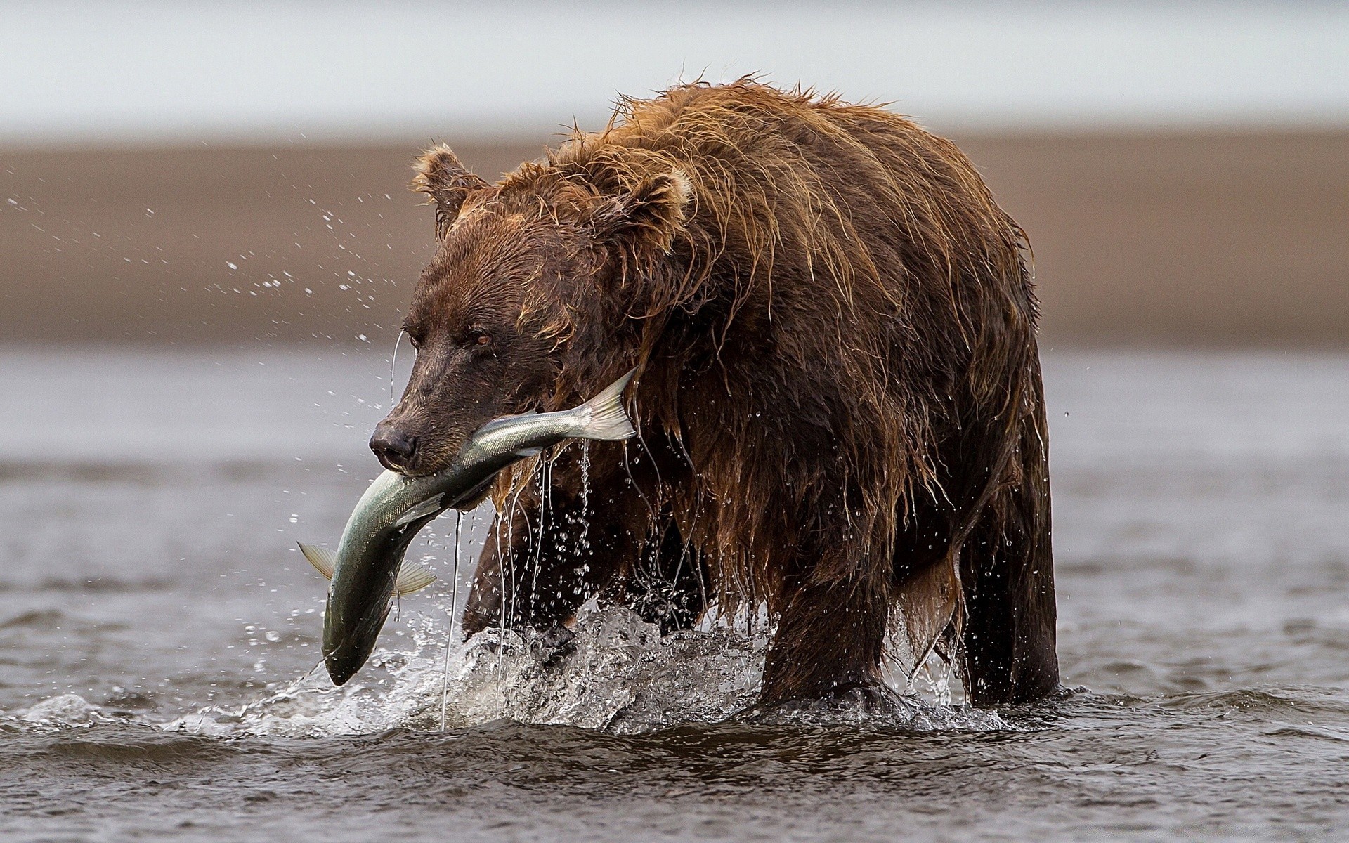 Cartoon superhero baby with a toy gun and a pet fish in an aquarium
