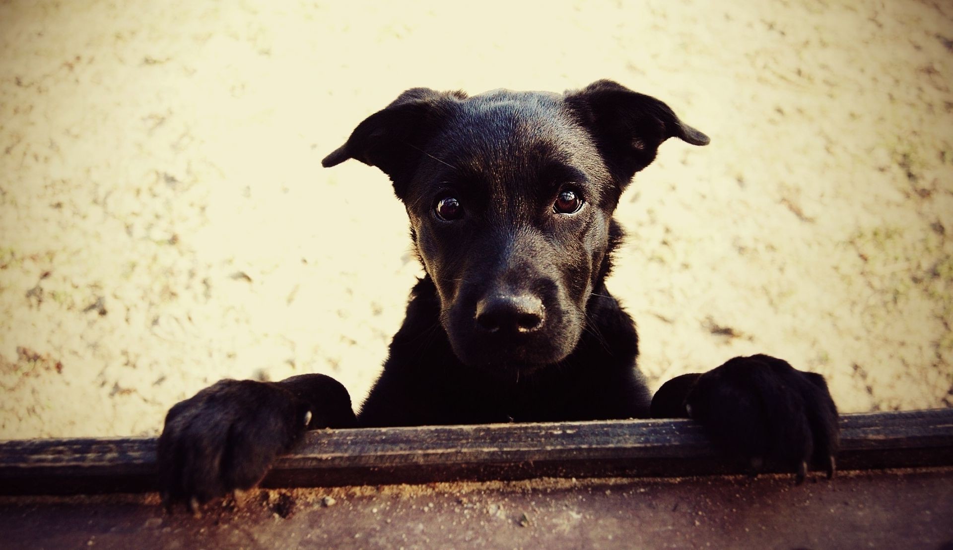 Black dog adult sitting watching