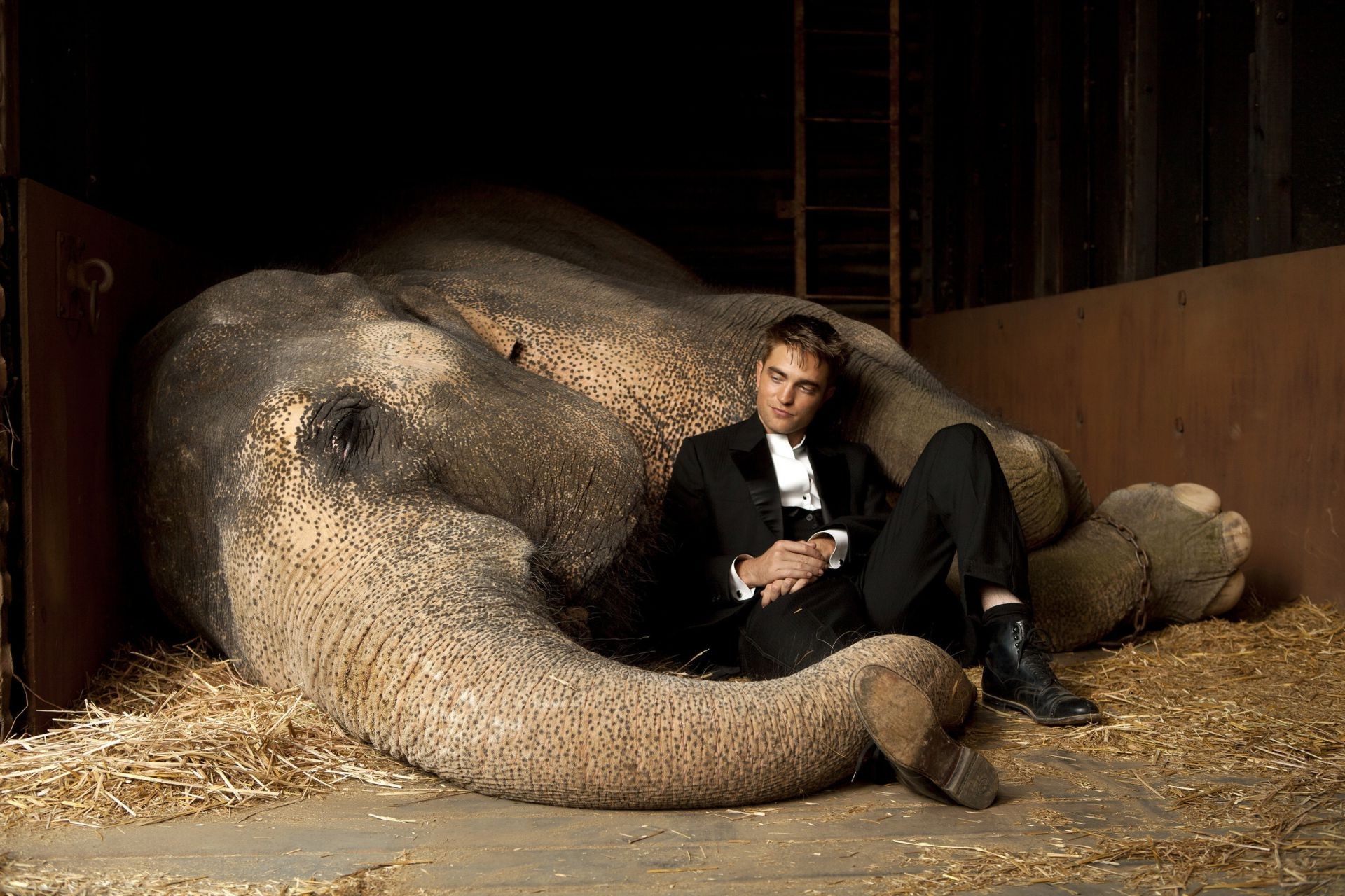 A herd of elephants goes to a flophouse under the light of the setting sun