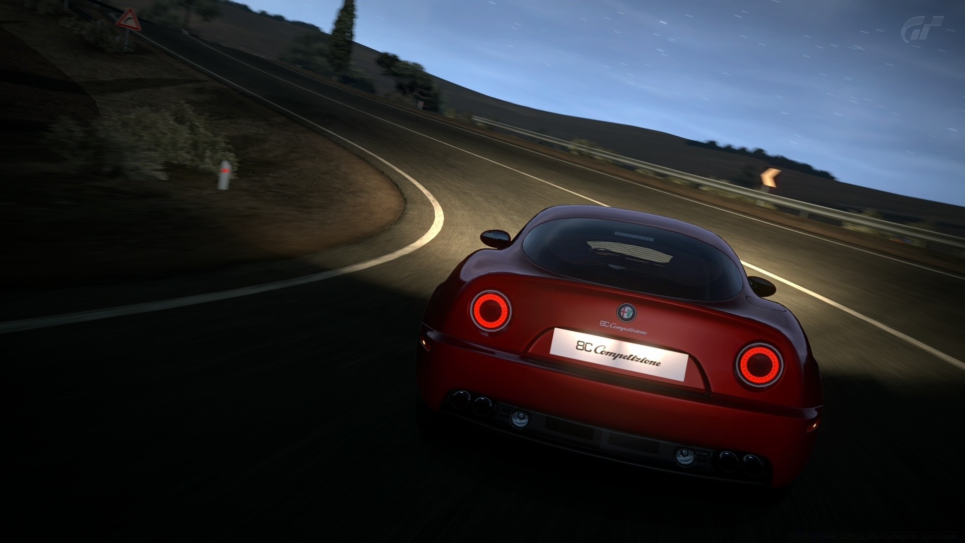 Lights of a red car on the highway