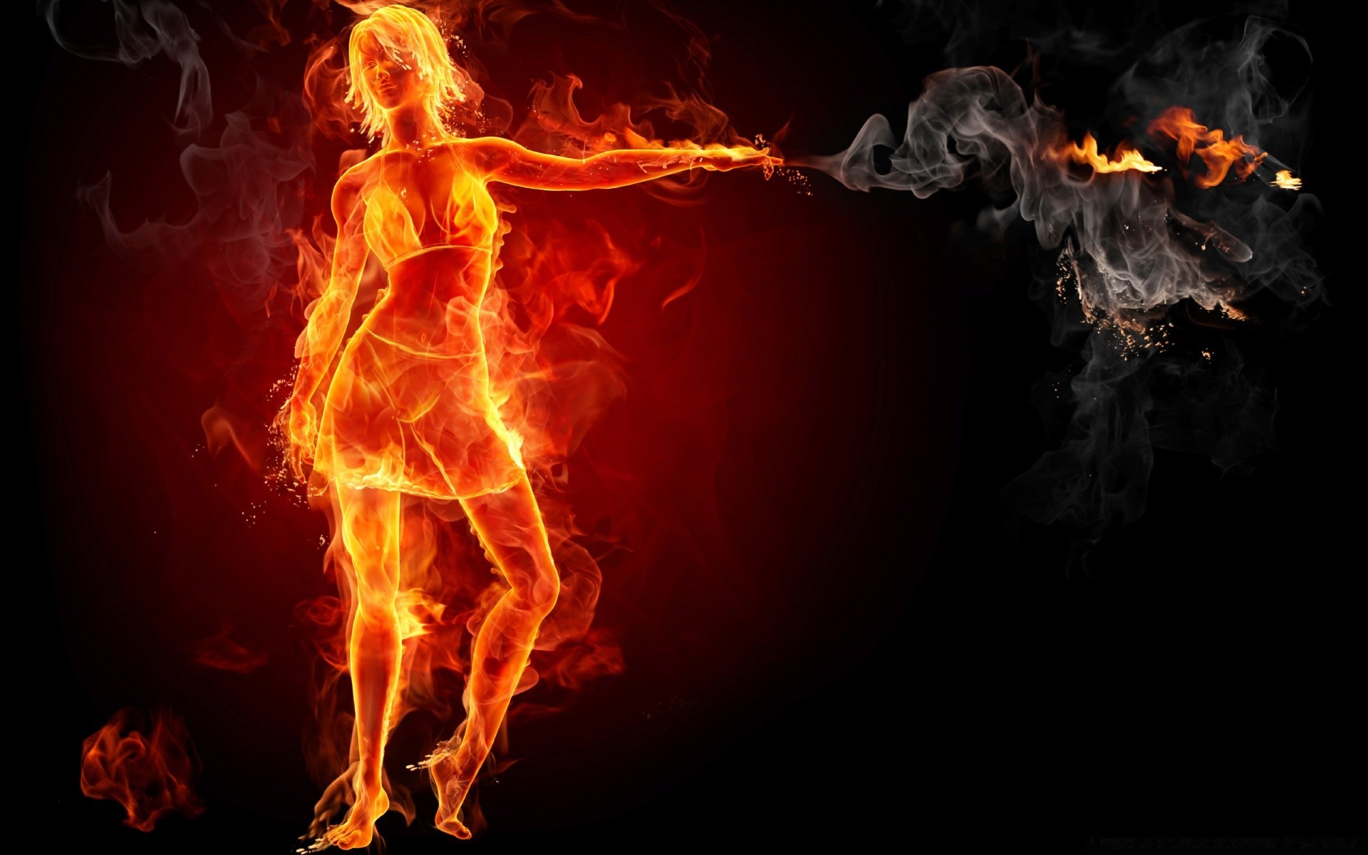 Portrait of a woman with smoke and fire