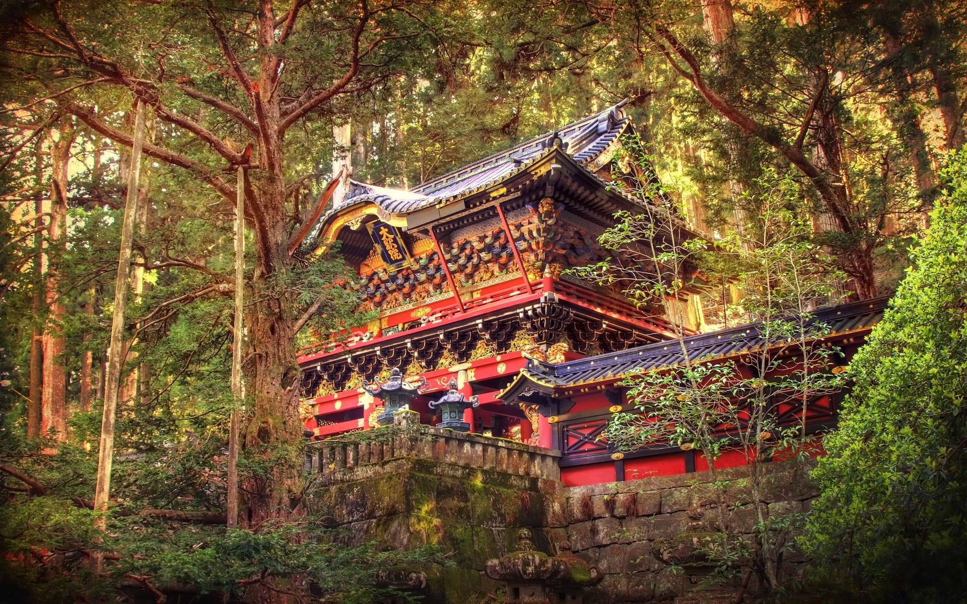 A beautiful temple in a sunny forest
