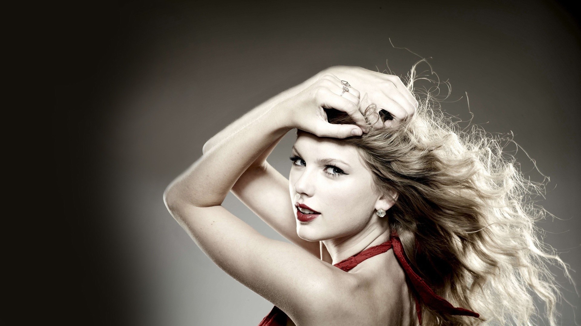 Portrait of a young singer in red