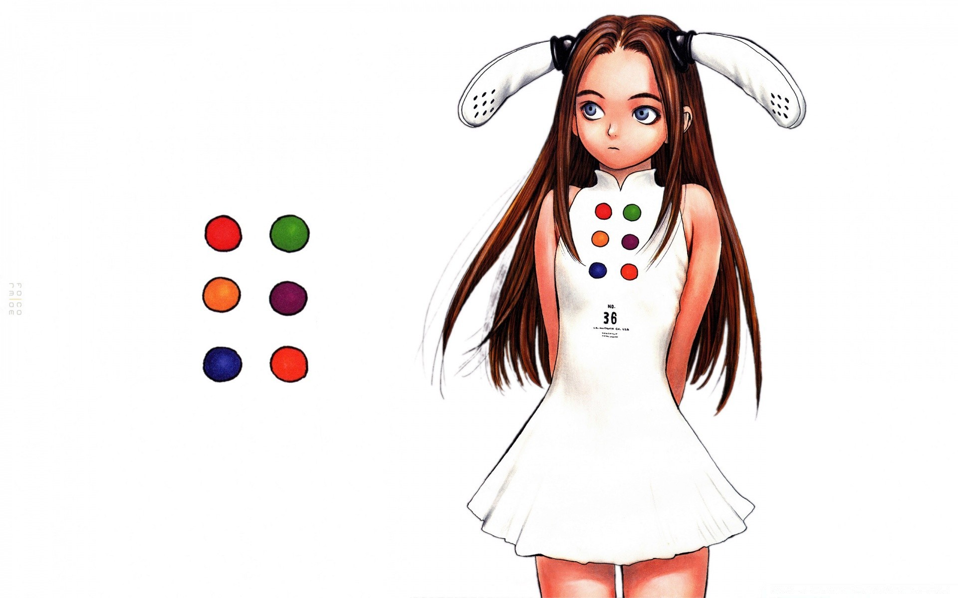 Anime. A girl in a white dress with white long ears