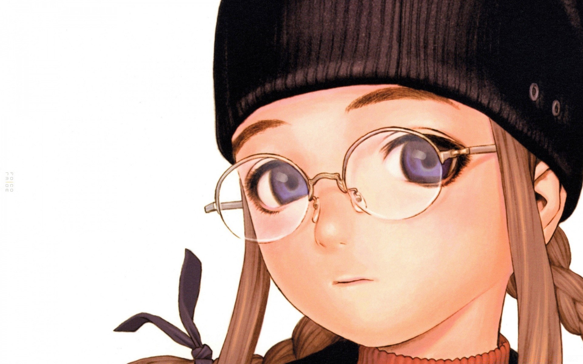 Stylish anime girl in round glasses and black hat