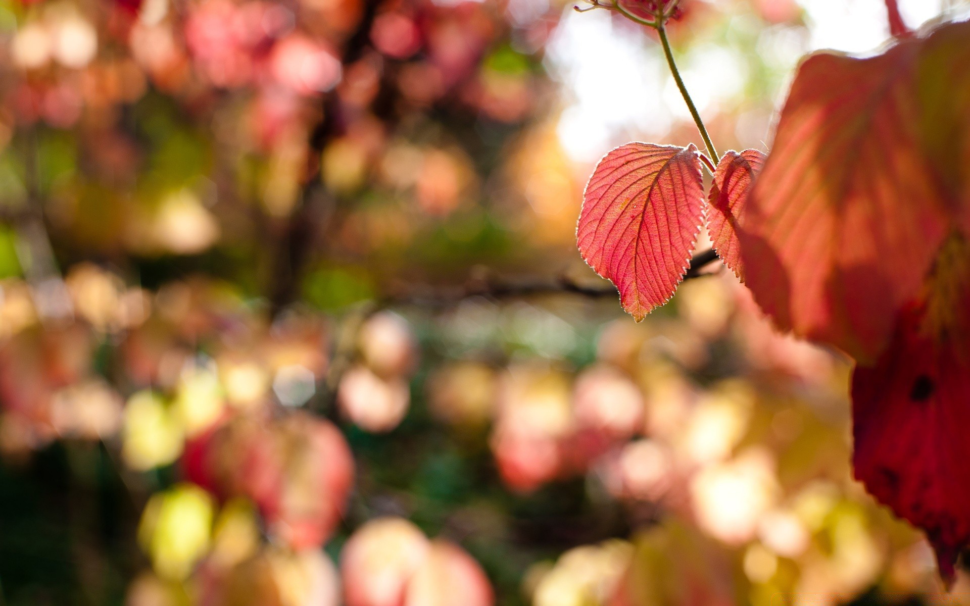 Autumn red leaf on a branch
