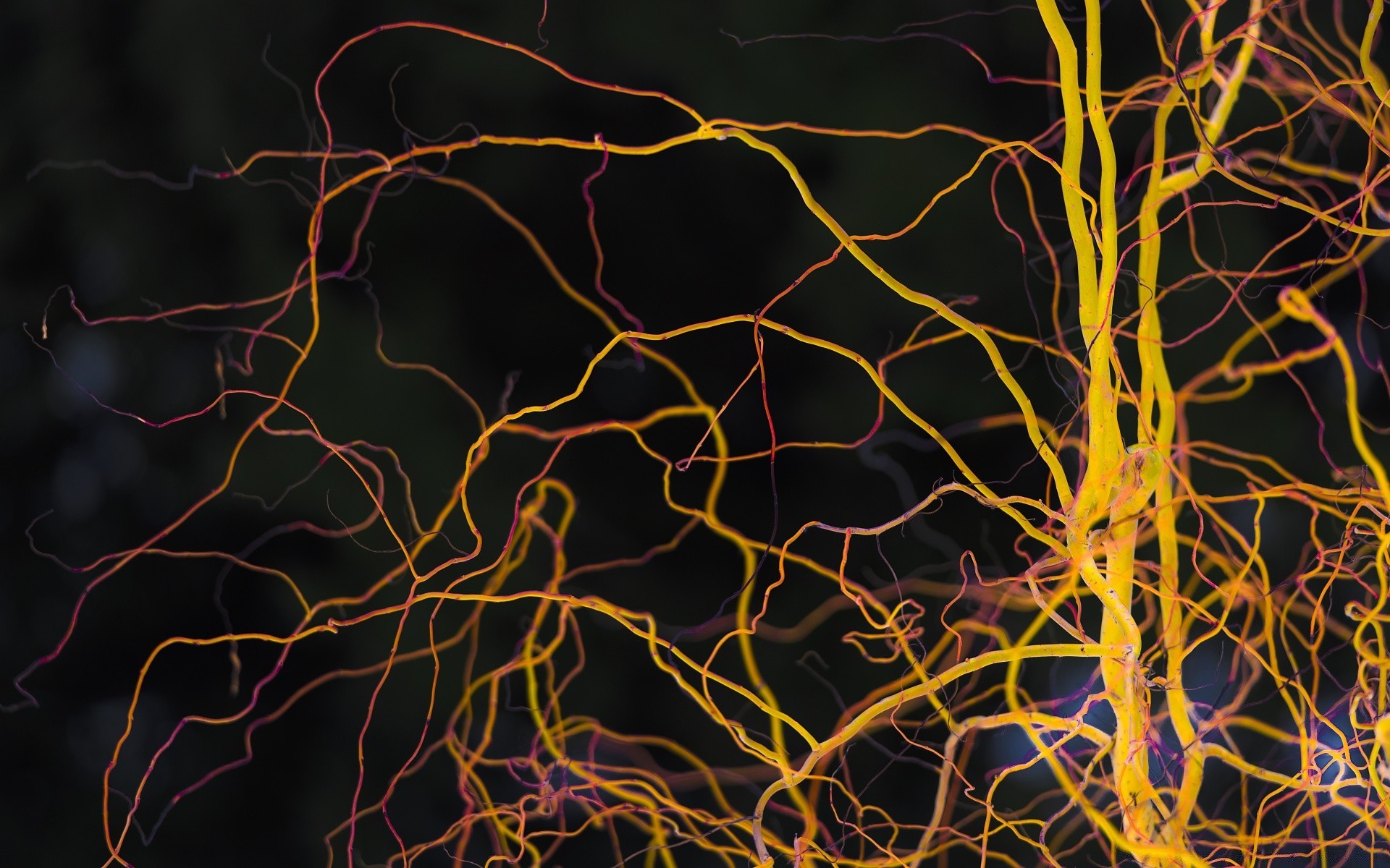 Yellow neural networks on a black background