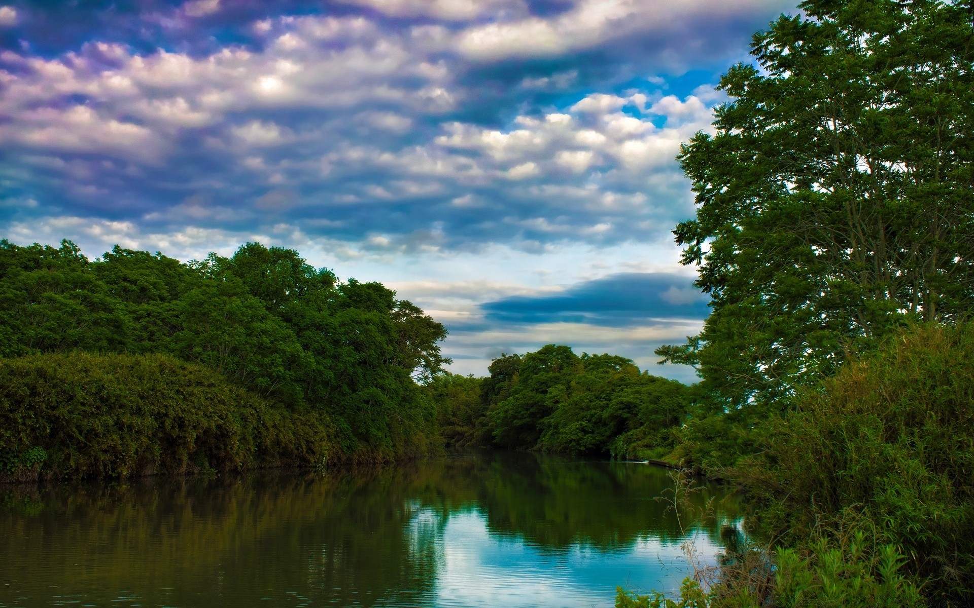 Feather clouds in the reflection of the lake