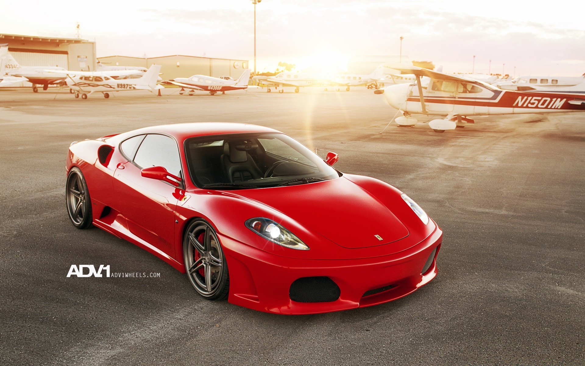Red Ferrari and white planes