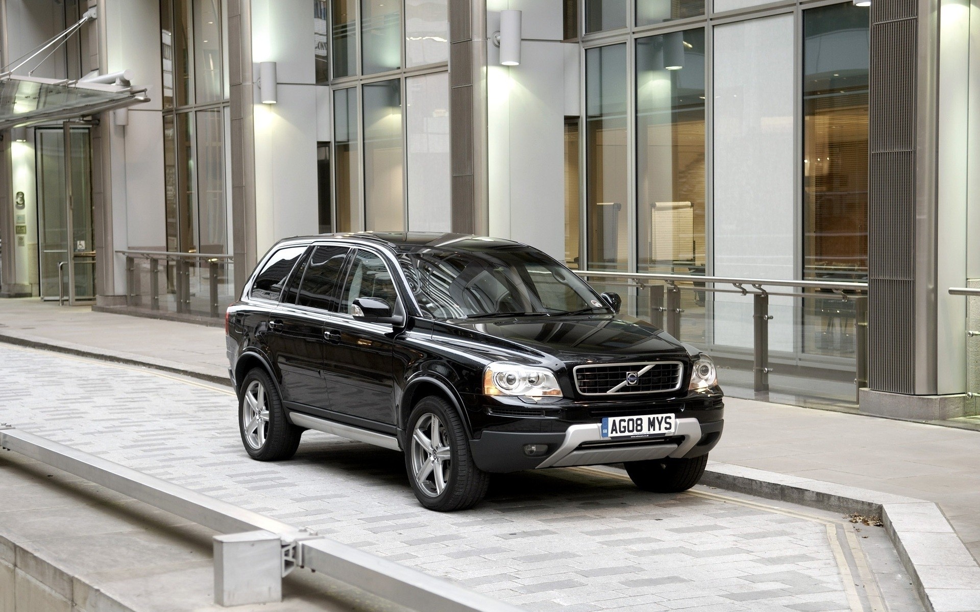 A Volvo car is parked on the sidewalk
