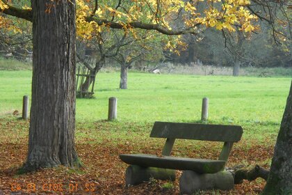 Bench under a tree in autumn in the park