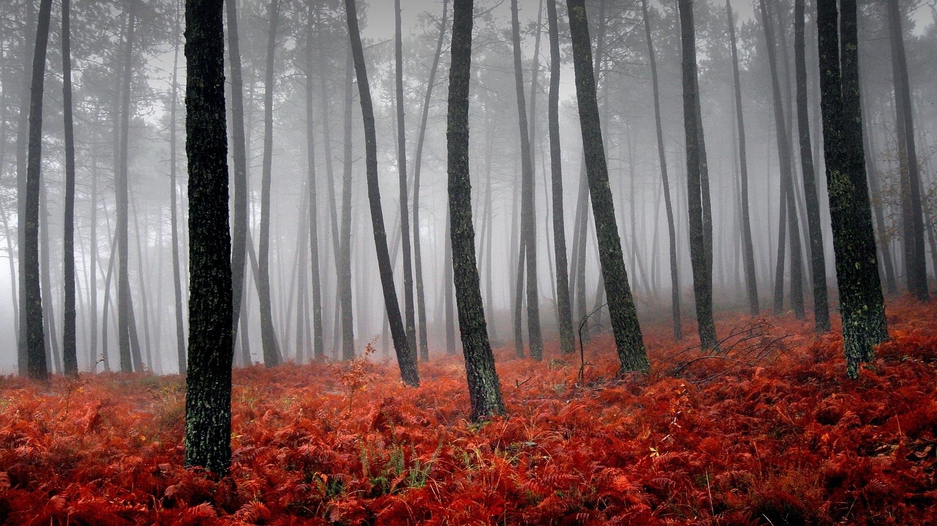 AUTUMN FOREST AND A PATH WITH LEAVES