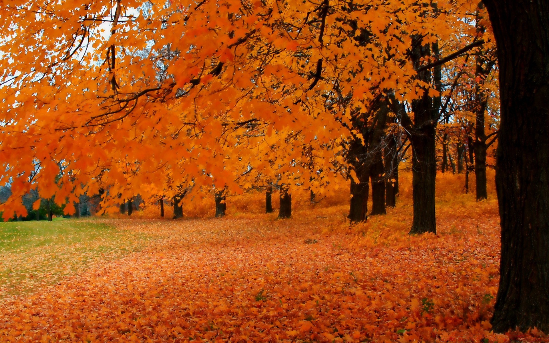 A variety of shades of autumn. trees against a beautiful sky with cloudsA variety of shades of autumn. Trees against a beautiful sky with clouds
